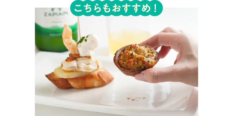 キノコとエビを生クリームとスパークリングワインで作ったソースであえ、舟形のパイにつめて焼いた一品