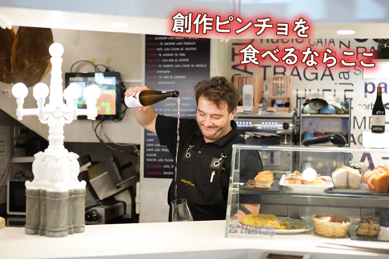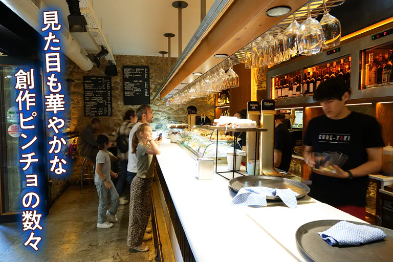 旧市街から少し離れた、地元の人々が暮らすグロス地区の実力派バル。1982年までは高級レストランとして経営し、毎日50種類用意するピンチョはどれもモダンでハイレベル。 ウニのムースやカニのピンチョなど、ひと手間かけた創作系が評判。日本語メニューもあるので利用しやすい。
