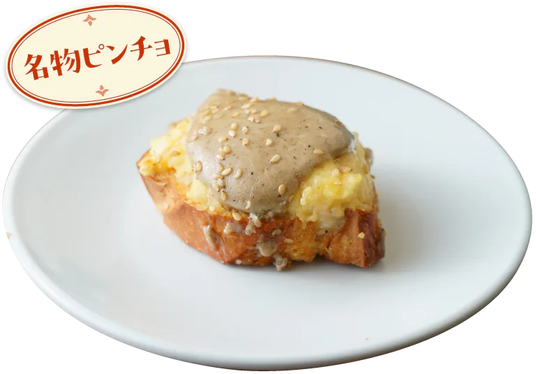 今、ヌエバ広場のなかでも一番人気といえる1982年創業のバル。創作料理が人気の実力派で、フォアグラやウニのムースなど、モダンな一皿が楽しめる。ピンチョスの種類が最も多く揃うのは12~13時の時間帯。早めに来ても品数が少ない場合があるので注意して。