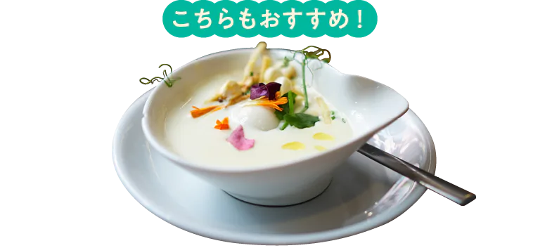 ラチャの羊のミルクをベースにした濃厚スープ。マッシュルーム、うずらの卵、にんじん、コーンなど具だくさん