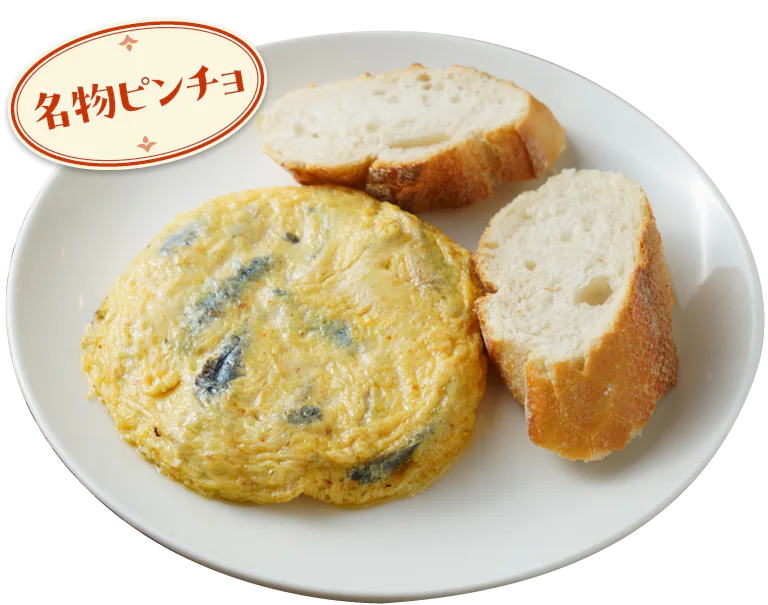 イワシのアヒージョ入りのオムレツ。半熟フワフワの卵焼きとイワシのほどよい塩味が美味
