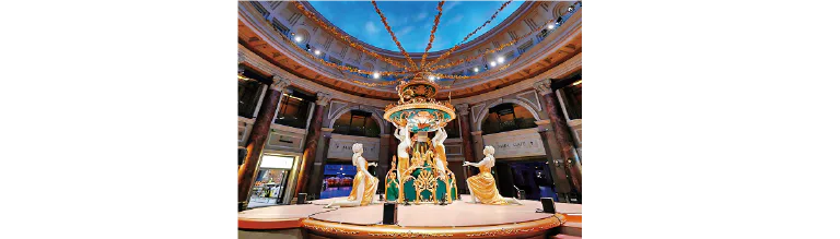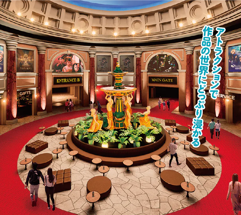 6体の女神像が並ぶ「グランドロビー」。パークの中心にあるきらびやかな空間だ