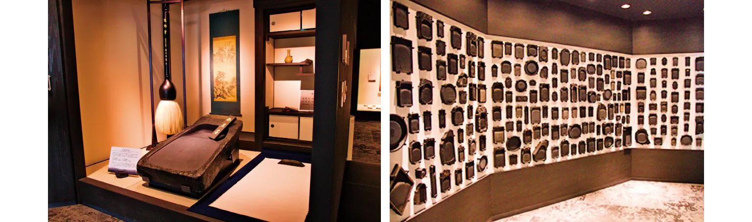 雄勝で受け継がれてきた伝統的工芸品の魅力を発信。日本一大きい硯や筆、書状などの貴重な資料を展示。雄勝硯の販売もある。