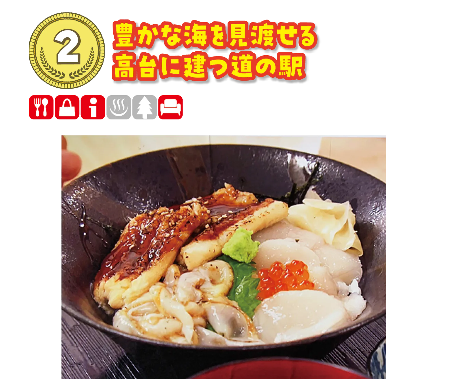 雄勝でとれた新鮮ホタテや、ふわふわなアナゴを豪快に盛り付けたホタテアナゴ丼は必食!