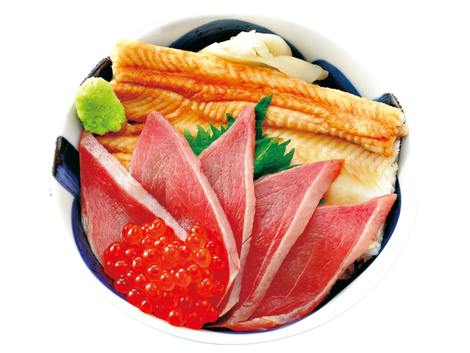脂がのった秋の味覚を豪快に盛り付け。食欲の秋にぴったりな食べごたえのある丼だ。「弁慶鮨」では、アナゴやイクラも味わえるのがうれしい。