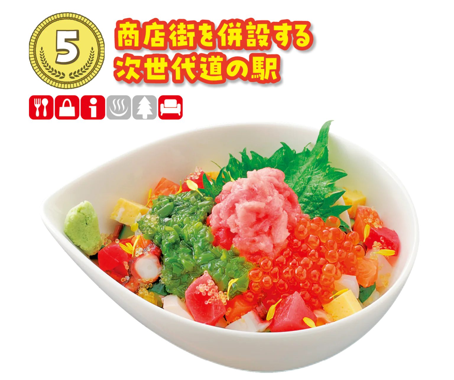 「シーパルピア女川」「地元市場ハマテラス」「女川町まちなか交流館」「女川町たびの情報館ぷらっ と」の4施設を1つのエリアとして道の駅の認定を受けた全国でも珍しい形態の道の駅。欲しいもの、ことが揃う頼りになるエリア。
