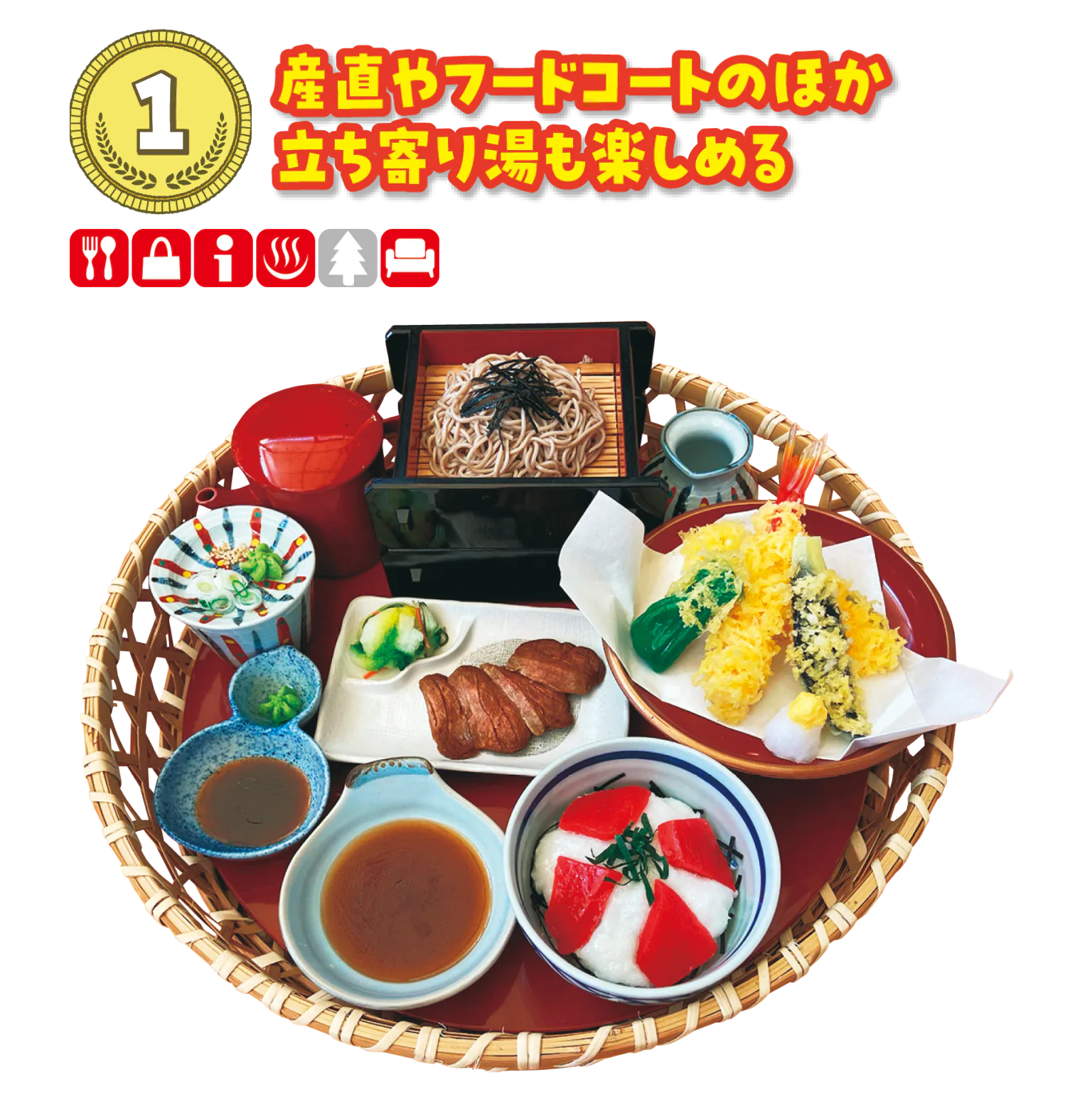 「 ダイニングたまり場」で提供する天ザルと海鮮が食べられる贅沢セット。
