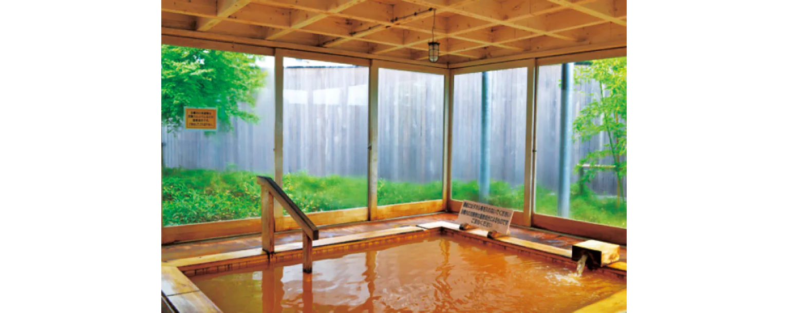 湯は茶色く濁った含鉄塩化物泉で、檜と石造りの2つの浴場がある。無料の休憩所などもある。