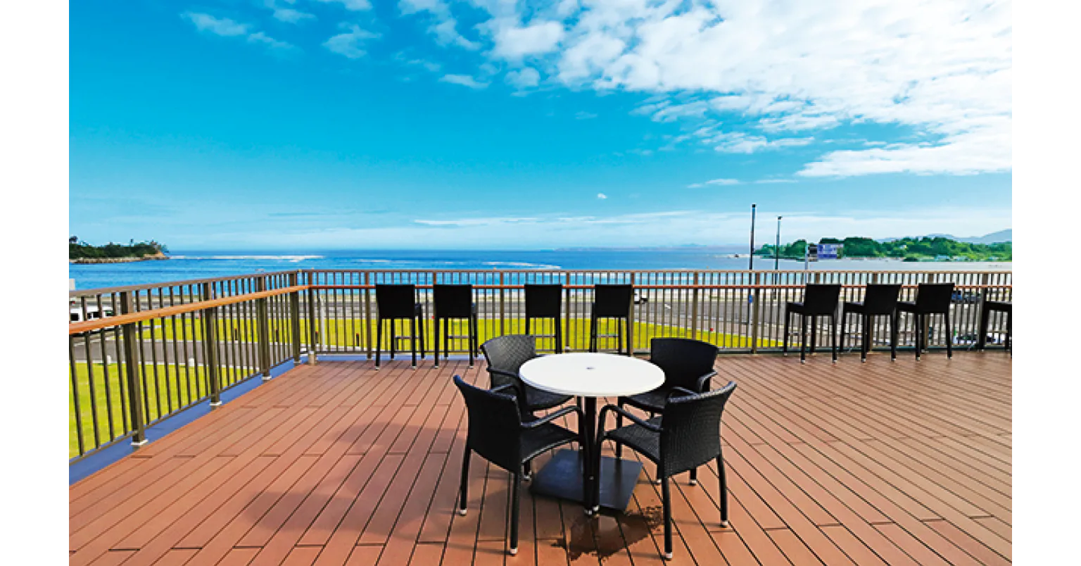 2階にある展望デッキからは壮大な大谷の海が一望できる