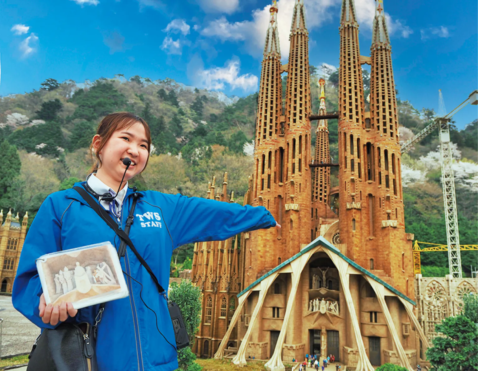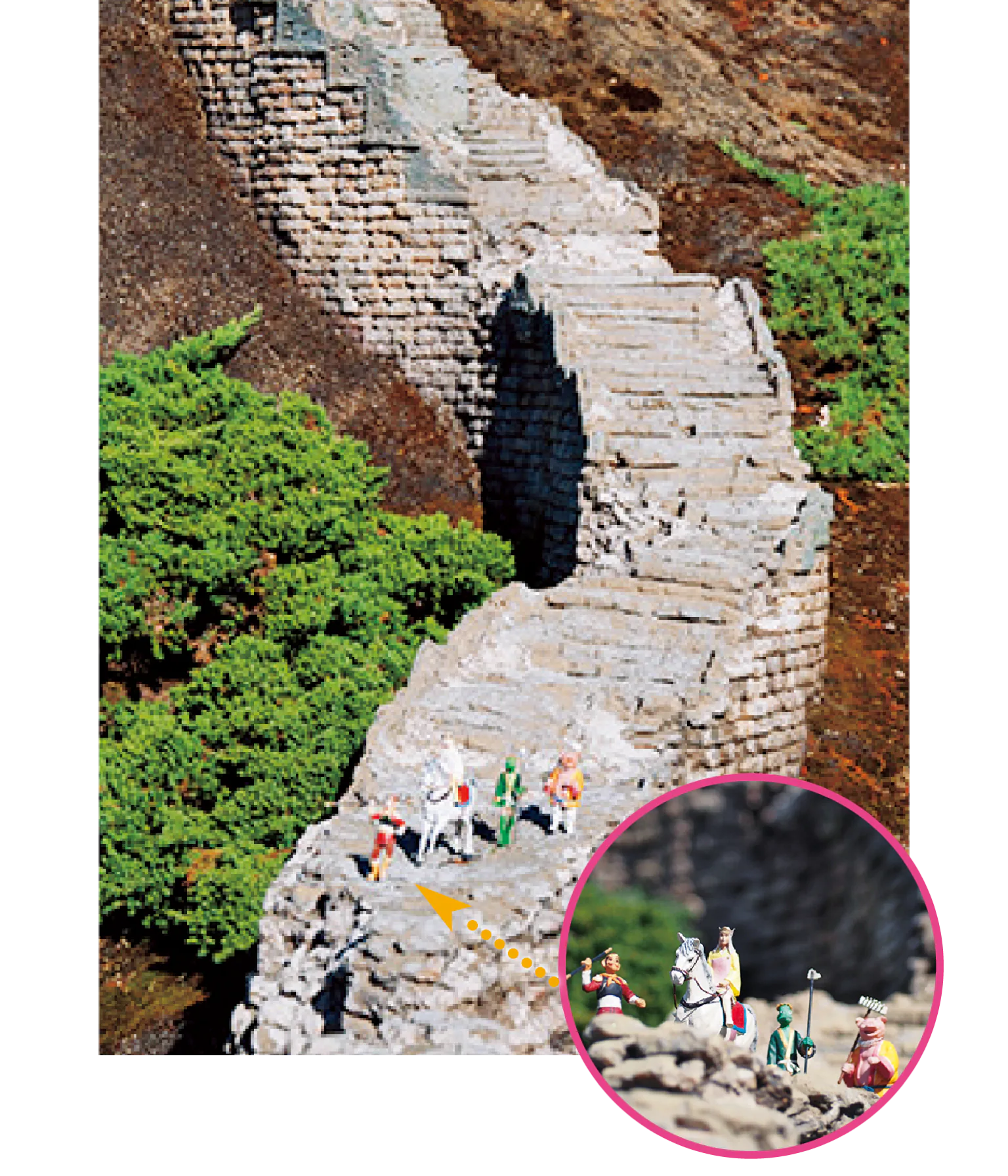 世界遺産49を含む、22カ国、計102の遺跡や建築物が集結。すべて25分の1の縮尺で実物そっくりに再現され、周りに配された人形もリアルで見ごたえがある。園内はヨーロッパゾーンなど、大きく6つのゾーンに分かれている。