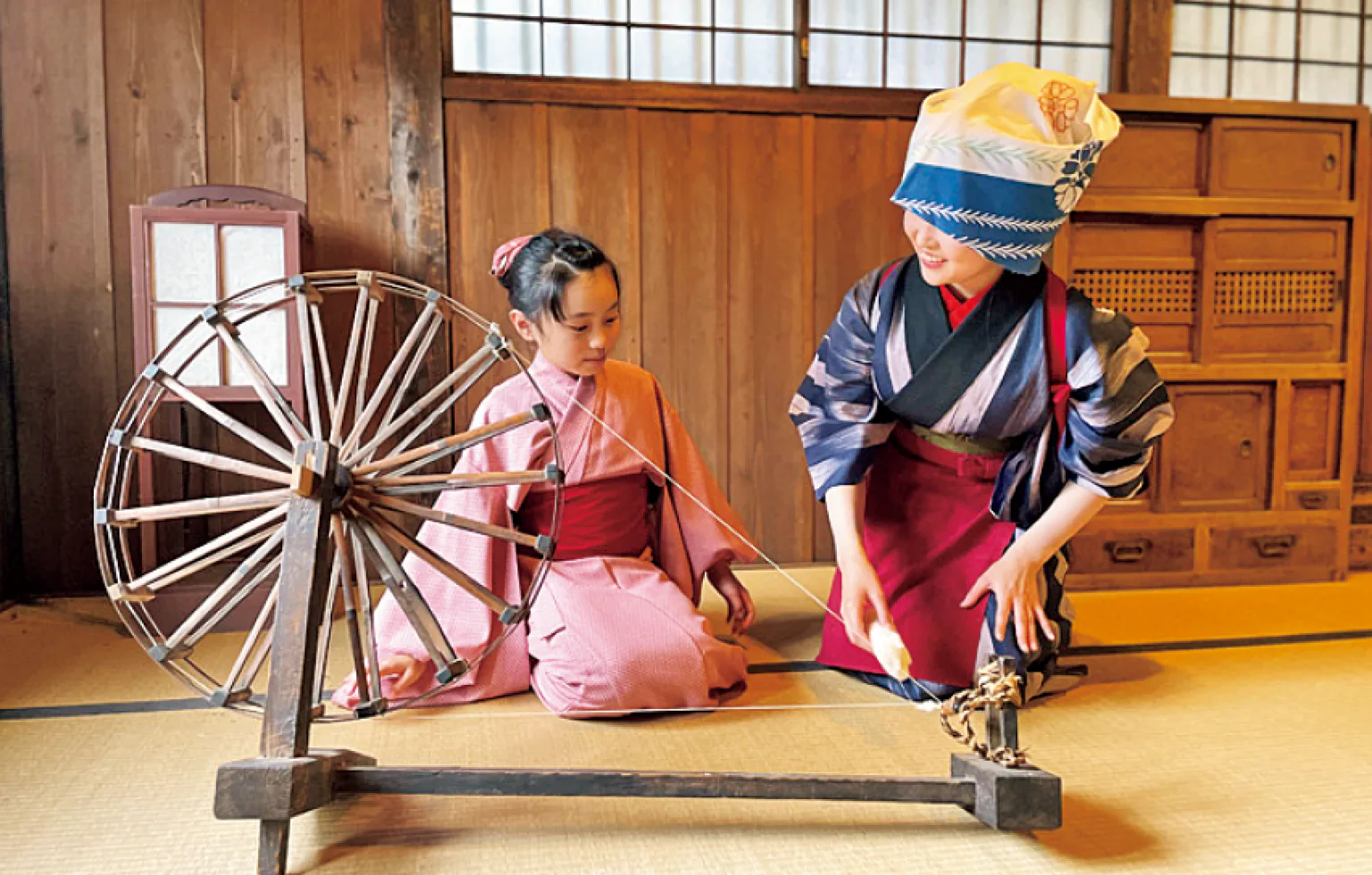 侍修行館では剣術をはじめ、刀の手入れなど、さまざまな侍修行体験ができる(13歳以上、侍修行館で当日予約、無料)。方向感覚がなくなる忍者修行の館も。