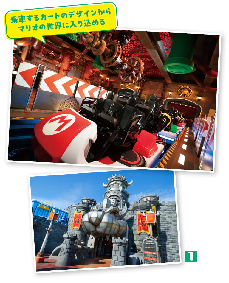 1.アトラクションは大魔王クッパがいる「クッパ城」の中にある。カートに乗るまでのさまざまな展示もお楽しみ