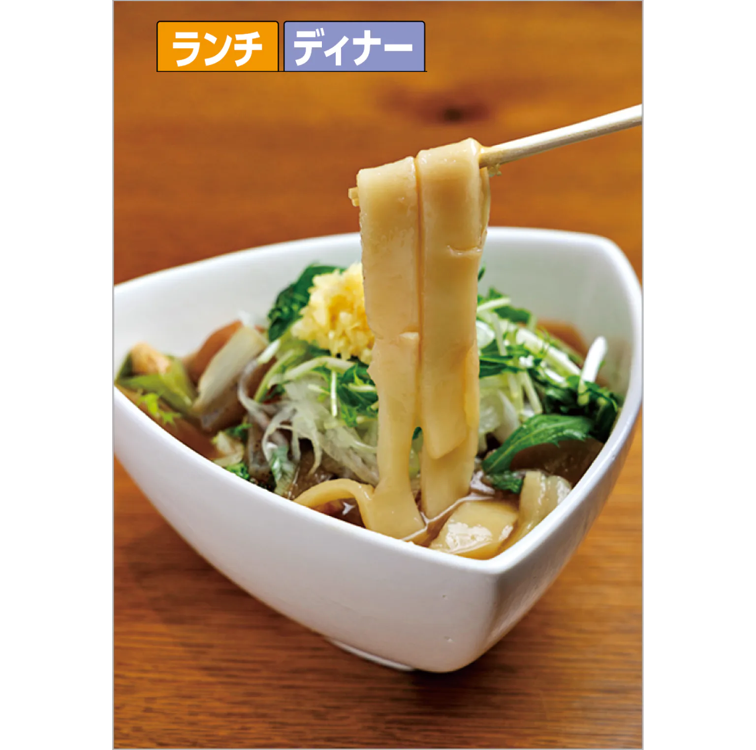 地粉を使ったひもかわうどんはつけ汁との相性抜群