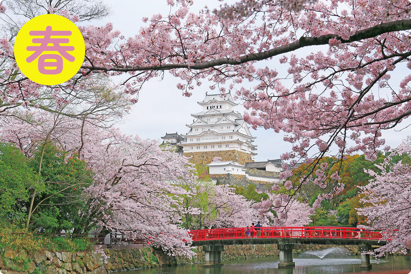 姫路城は「日本さくら名所100選」の一つにも数えられる絶好の花見スポット。例年、桜のシーズンには観桜会が開かれ、広場では琴や和太鼓などが演奏される。