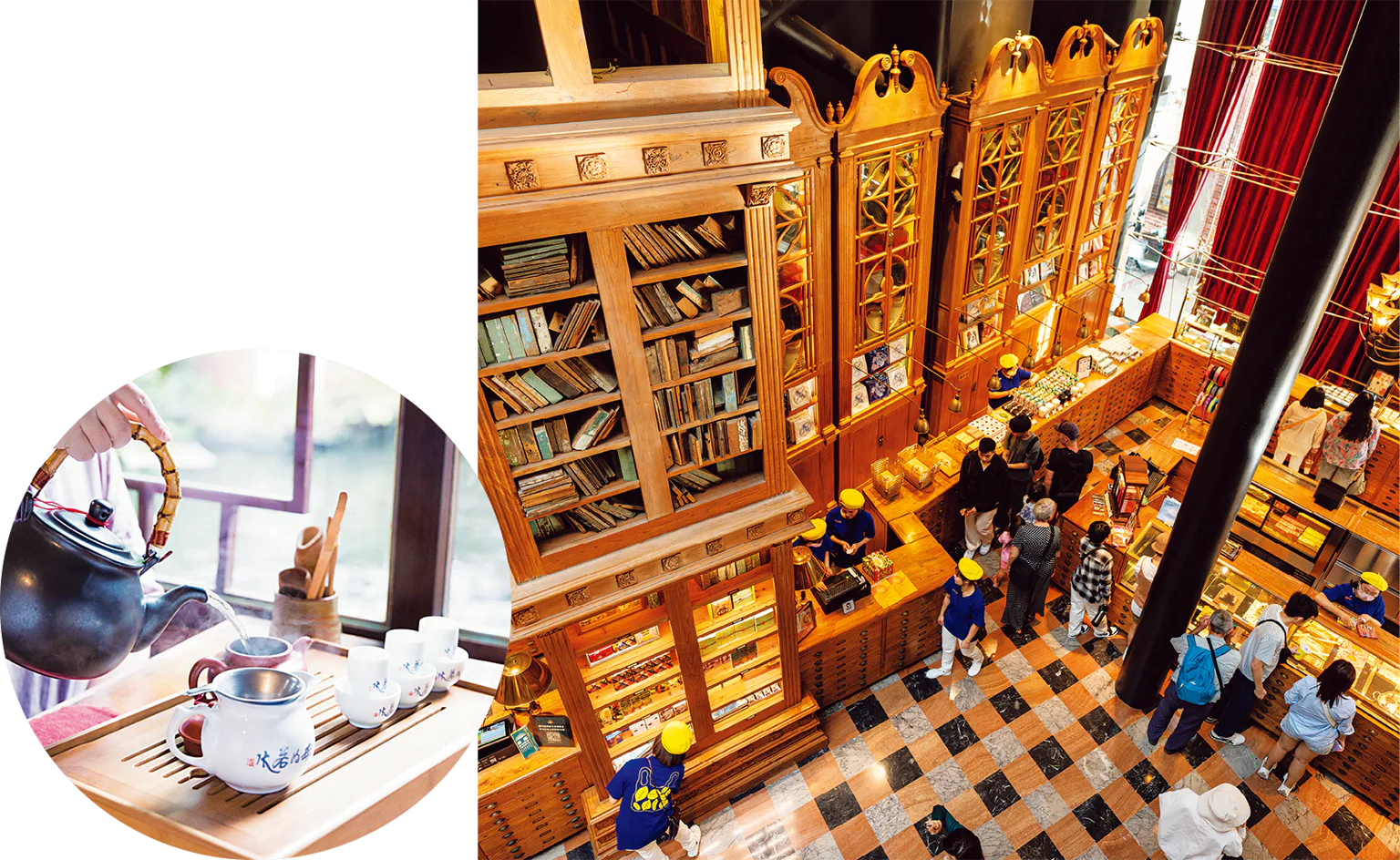 (左)茶葉の生産地が近いため、茶藝館やカフェが多い(右)映えスポットとして話題の宮原眼科