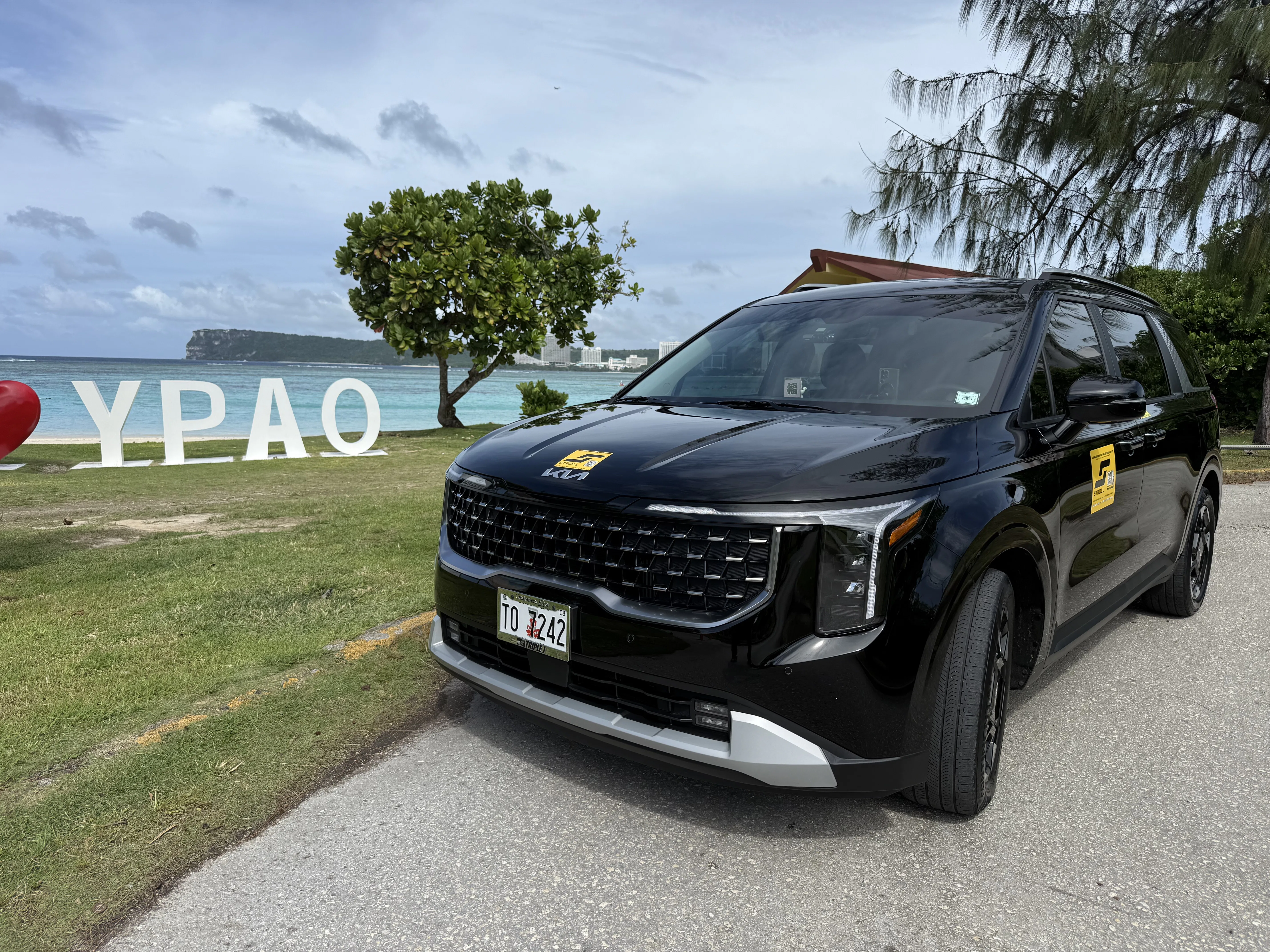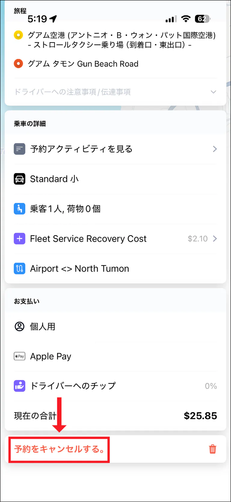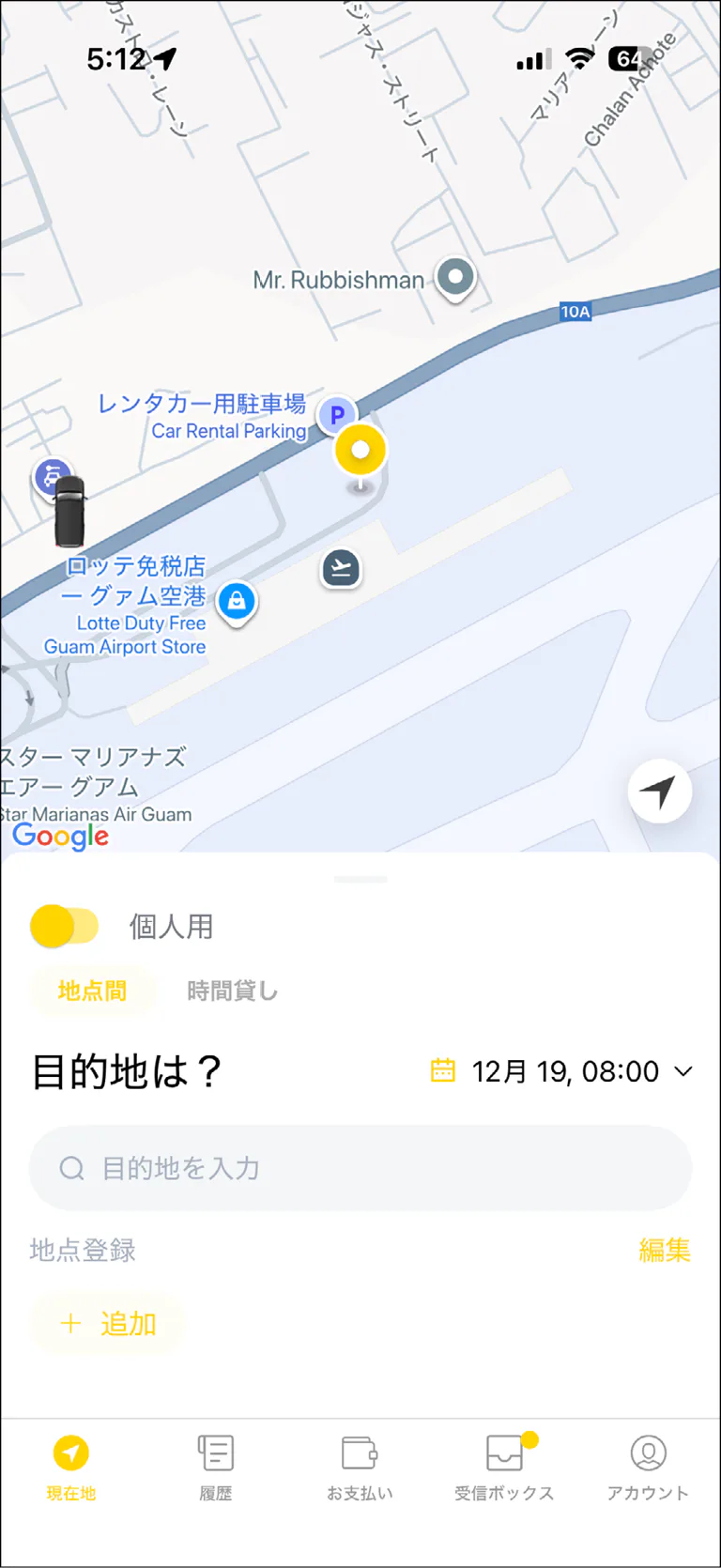 ※グアム国際空港から乗車する場合、「グアム空港」で検索して「Guam Airport-Stroll Pick-up Ariea」という選択肢を選ぶ。地図にピンが立つので、空港到着後、どこで車を拾えばよいのかが一目で分かるので便利。