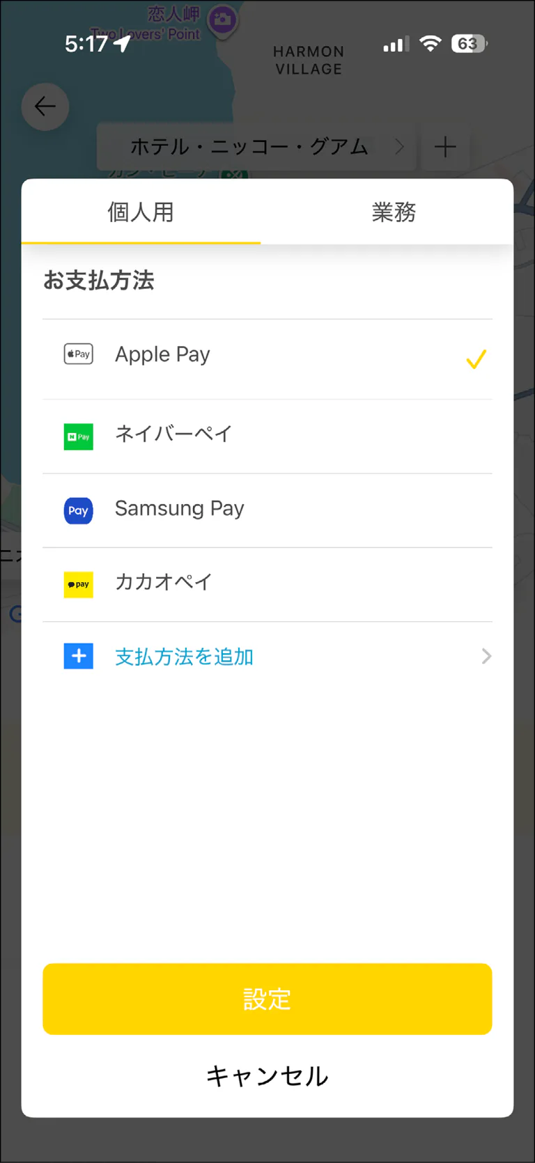 金額が確定したら支払い画面へと進む。事前に登録した支払い方法が選ばれているが、ここで変更することもできる。