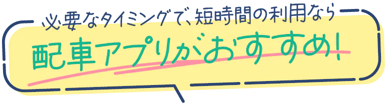 待ち時間が比較的少なく、車が到着するまでの時間がわかるので安心。配車予約や時間チャーターもできるので、シーンに合わせて気軽に利用できる。