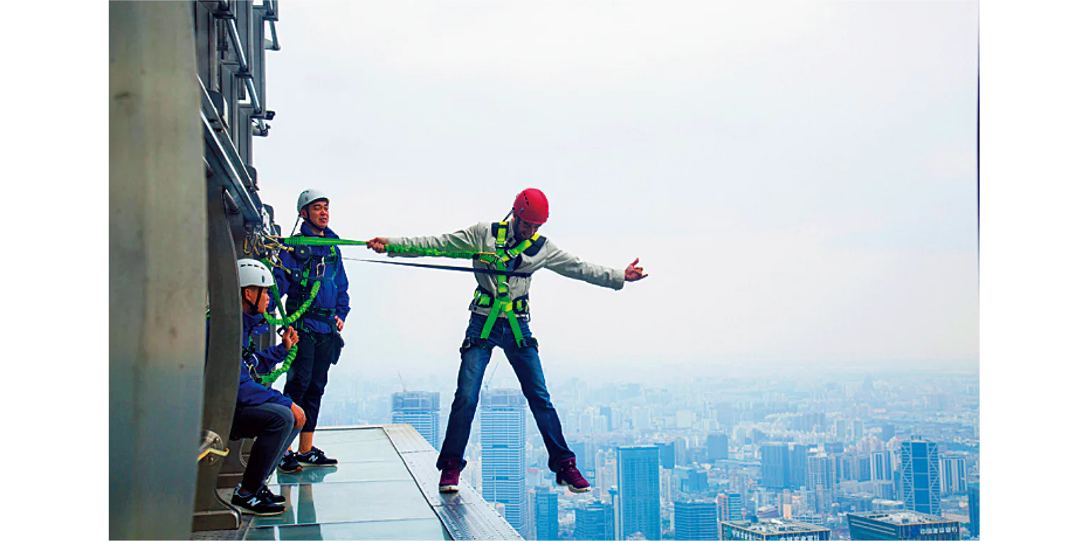 88階の外側に張り出した幅1mほどの通路を歩いてみよう。高所好きにはたまらない体験ができる。料金は一般288元(20分/要パスポート)。