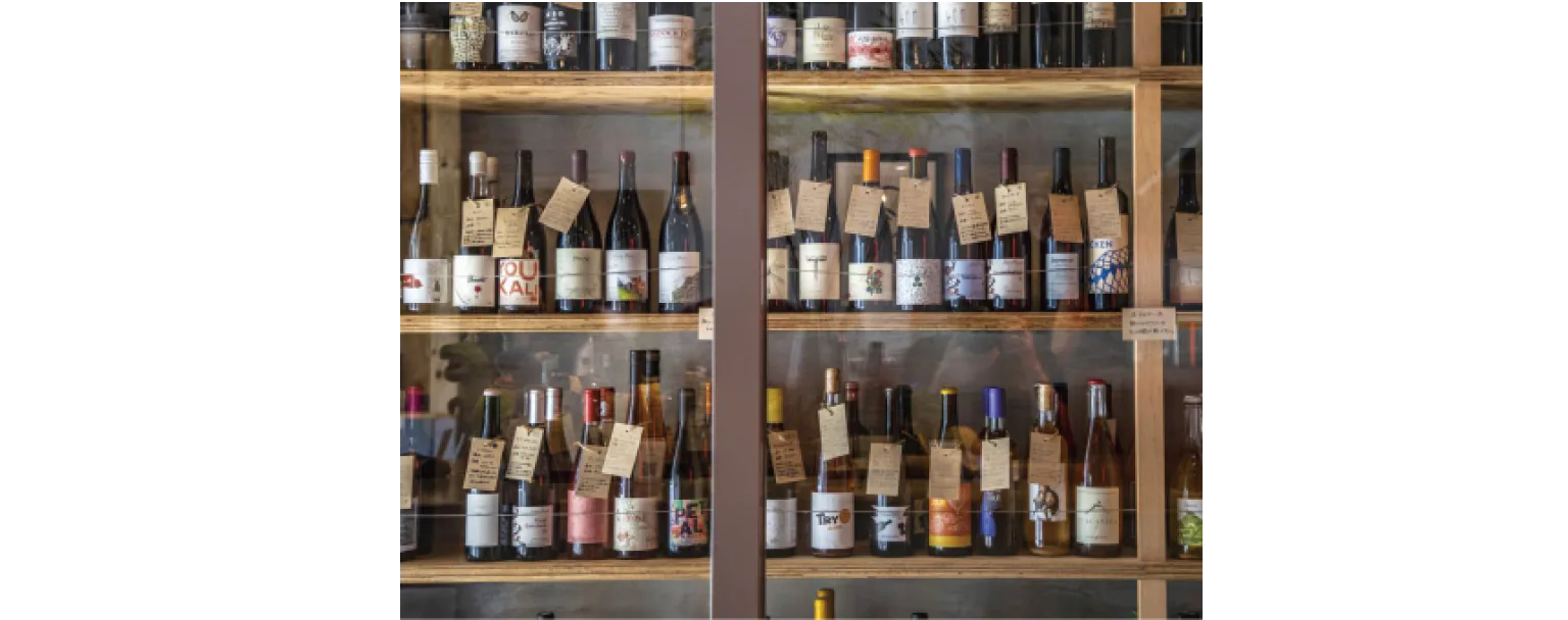 約100のナチュールワインがずらり。クラフトジンも揃う