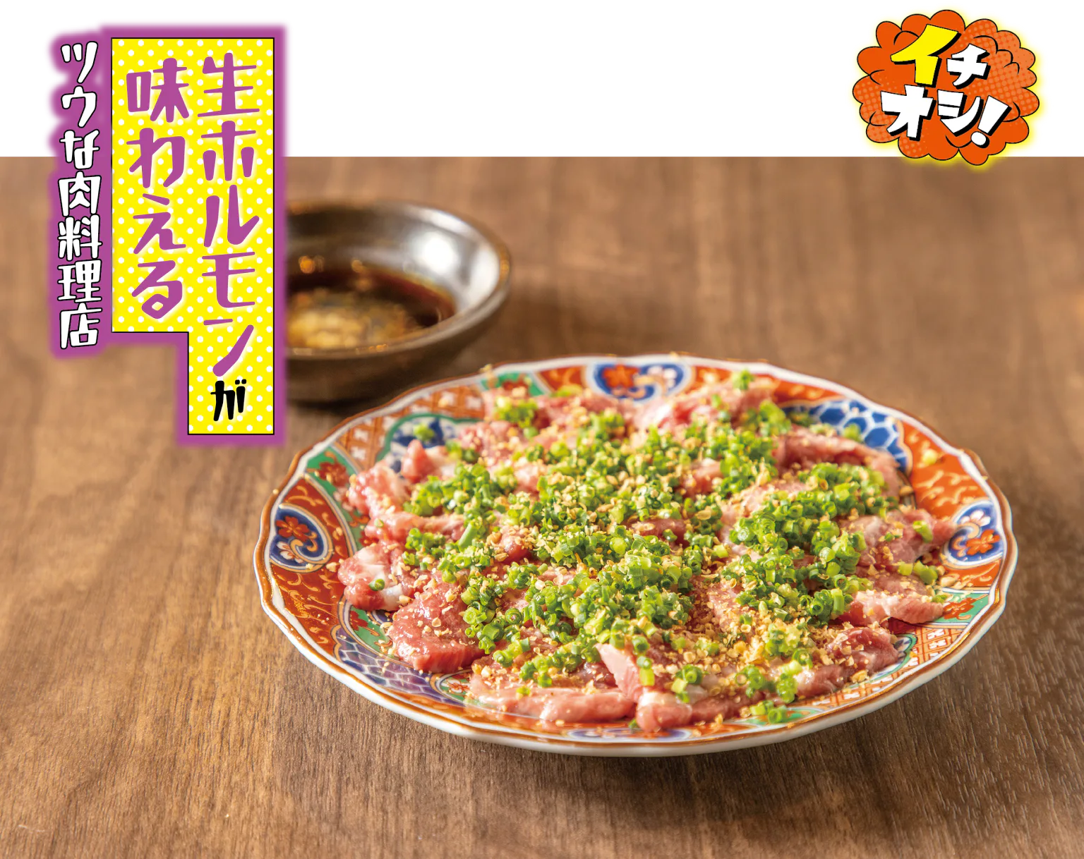 牛の頬にあるホルモン。噛めば噛むほど濃厚なうま味が口の中に広がる。生姜醤油を付けてさっぱりといただく