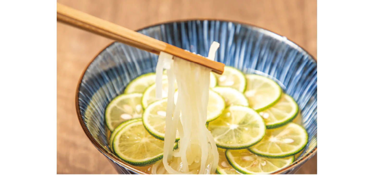 コシのある中太麺が美味!スダチのすっきりとした酸味とほのかな苦味がマッチ