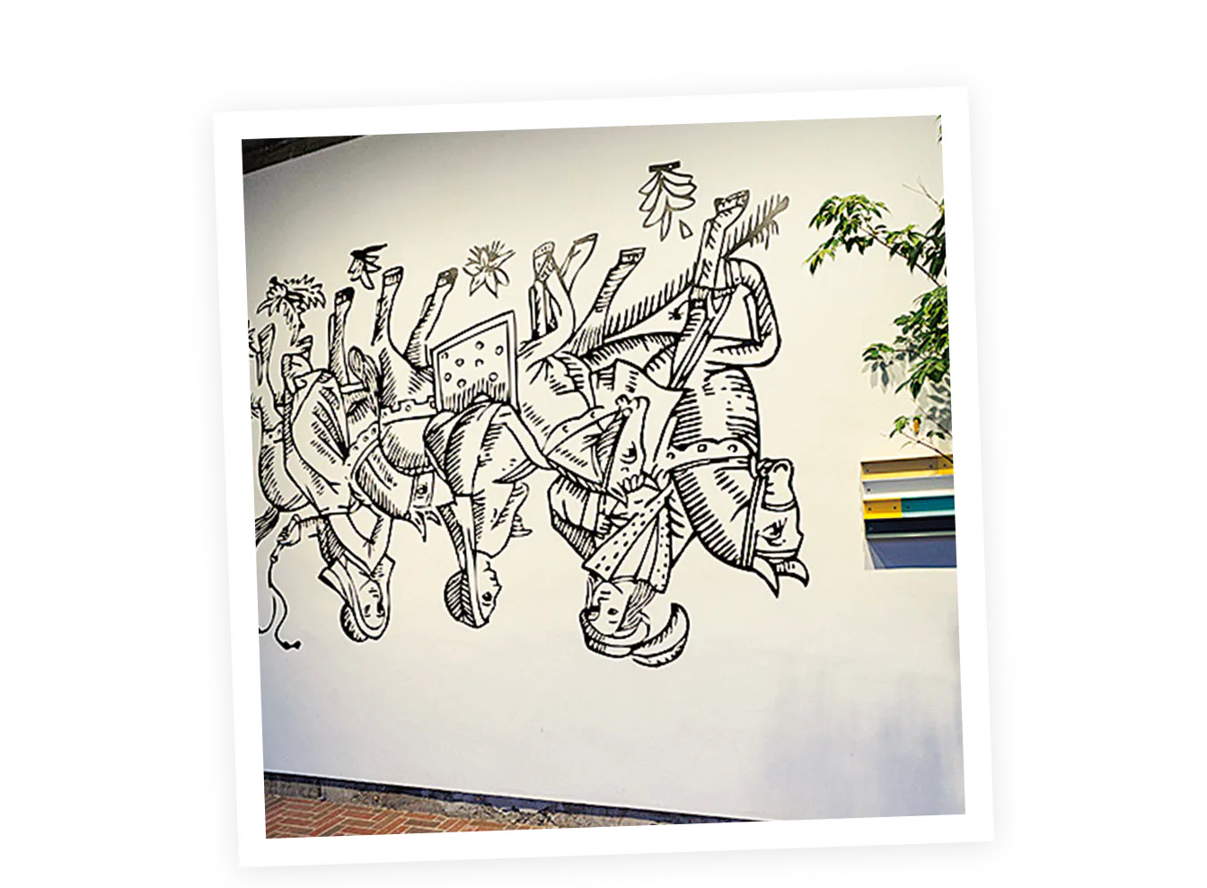 エントランスへと続く壁面のリアム・ギリックの作品が訪れるゲストを迎える