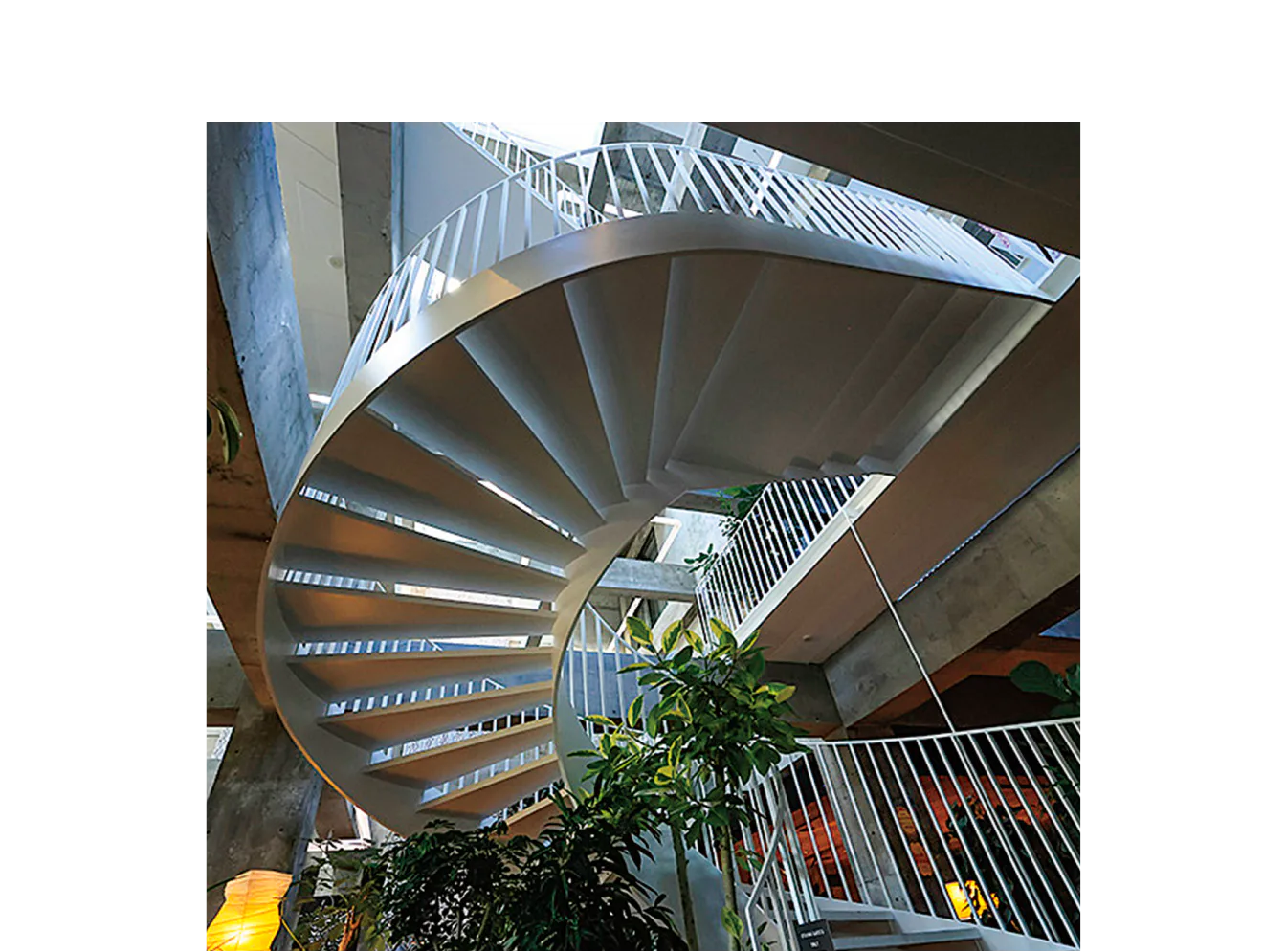 中央の大きならせん階段が目を引く