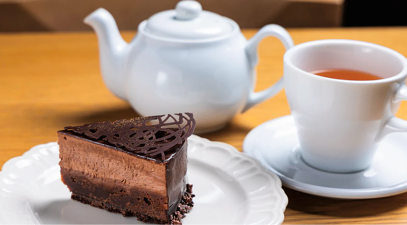 「the LOUNGE」の素敵な空間でも味わえるヴァローナカカオタルトムースショコラとアールグレイ