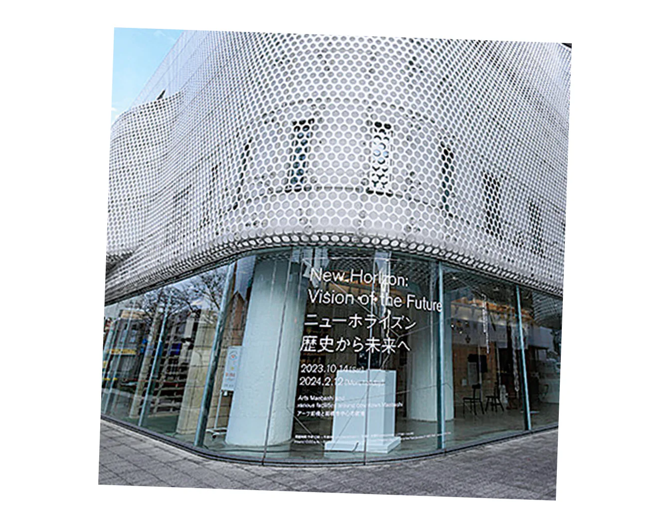 印象的な白いパンチングメタルの外壁