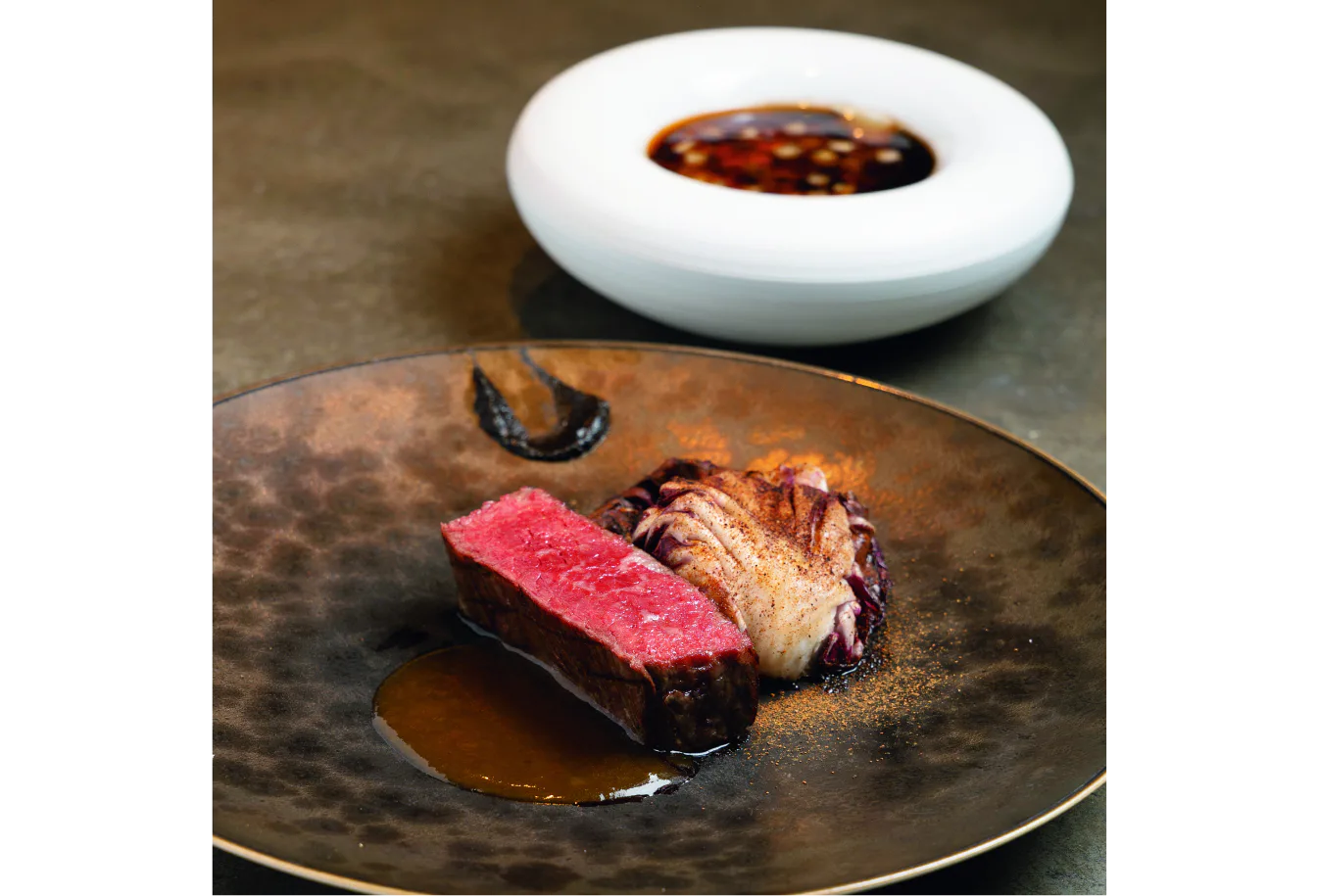 ディナーコース(10種1万8150円)には、郷土料理をアレンジしたOKIRIKOMIや、デザートのYAKIMANJUも。メインは赤城牛のロースト