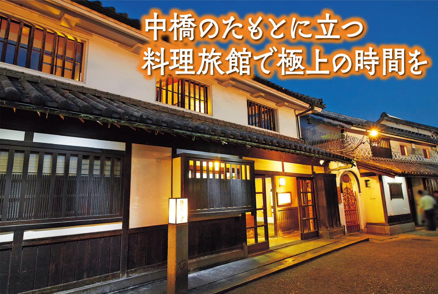 江戸時代の面影が残る倉敷美観地区には、情趣ある町家の旅館が点在。歴史ある空間ととっておきのおもてなしで、特別なひとときを過ごそう。