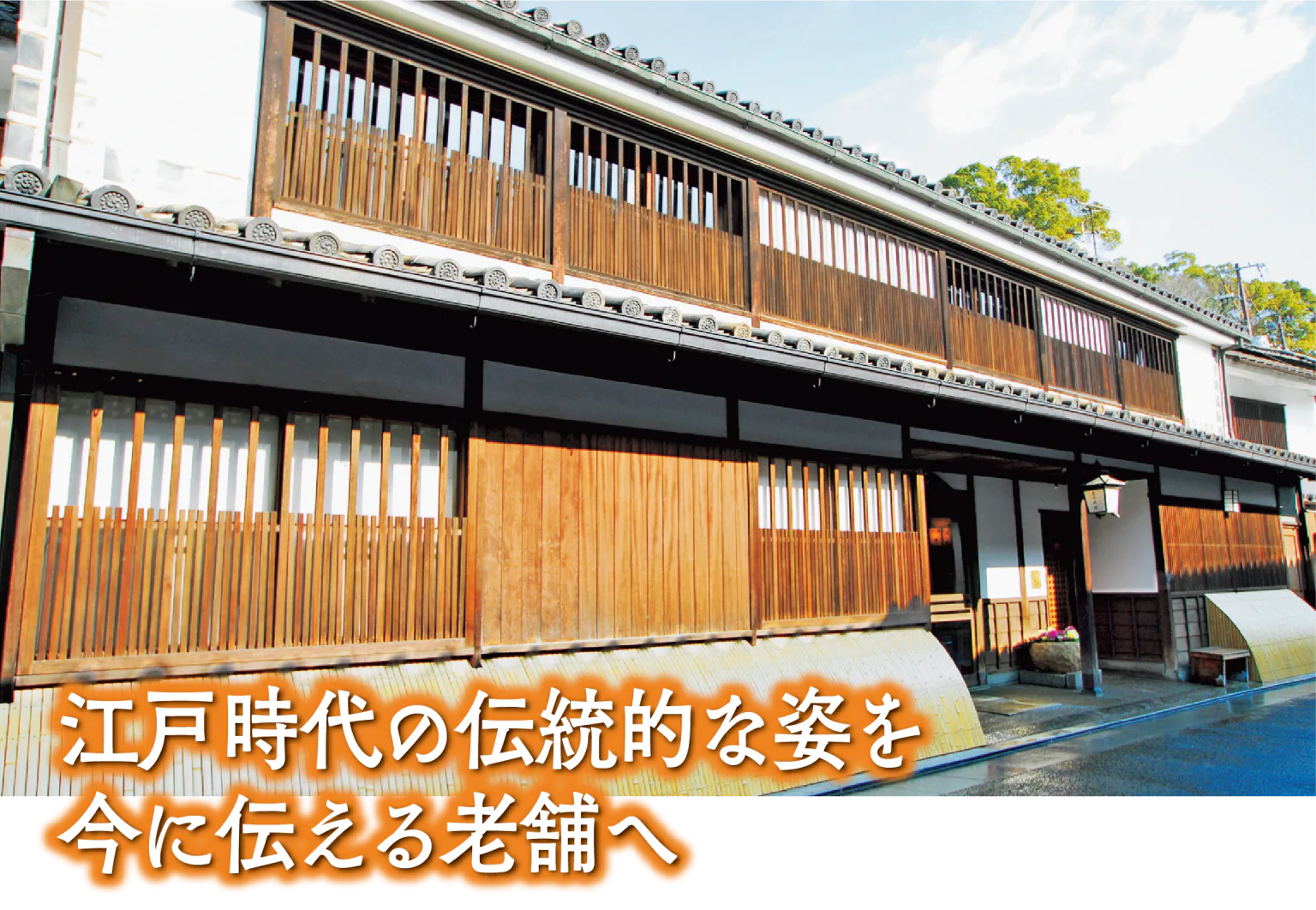 延享元年(1744)築の町家は、倉敷格子や本葺き瓦屋根、大梁などの意匠が残り、歴史を感じさせる