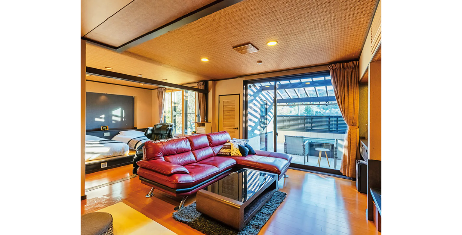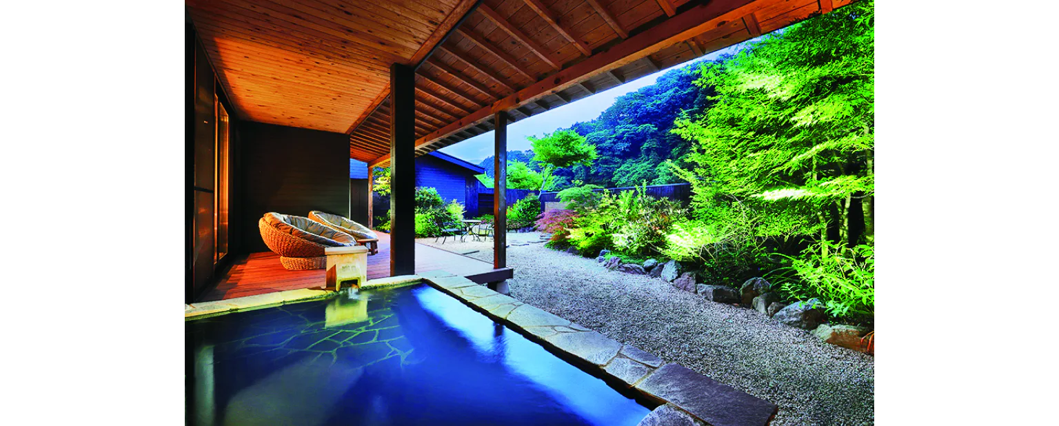 専用の露天風呂が特徴の特別室。メゾネットタイプや洋室もある