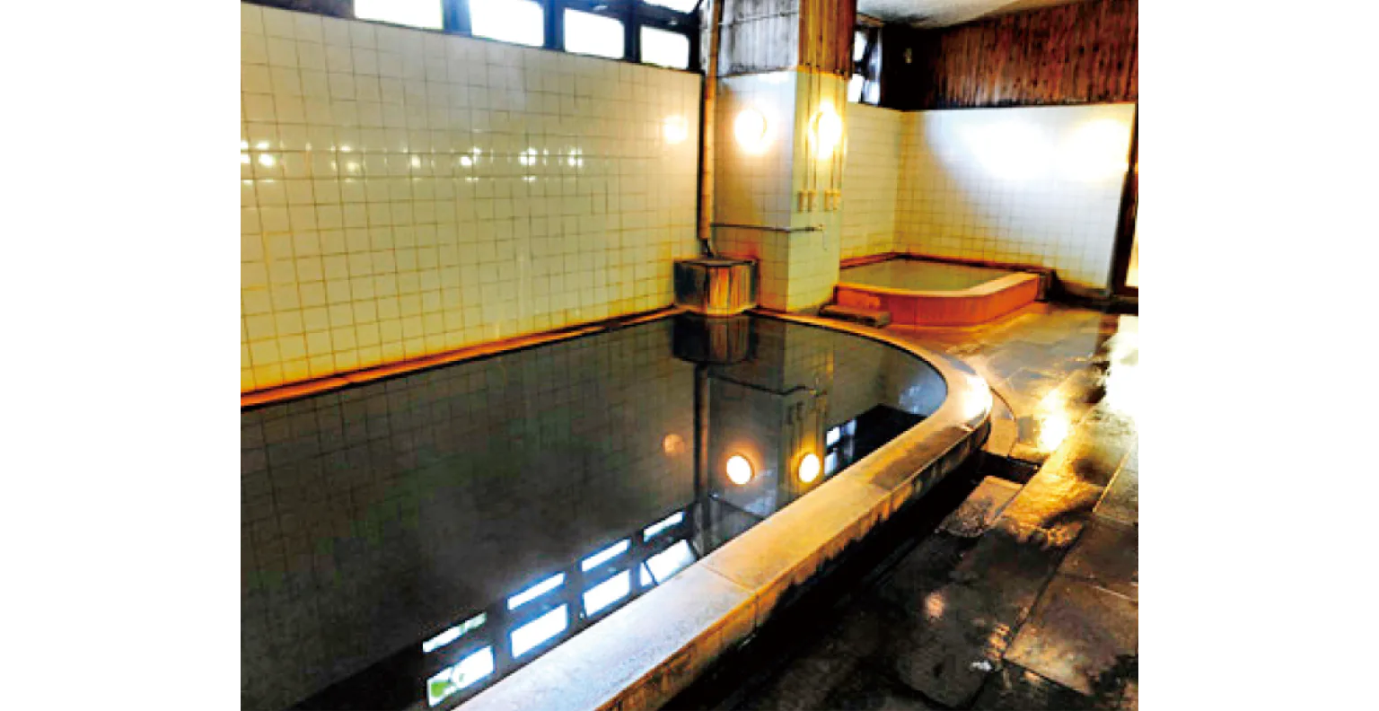 内風呂の大浴場では墨湯と刈子の湯から引く湯を楽しめる