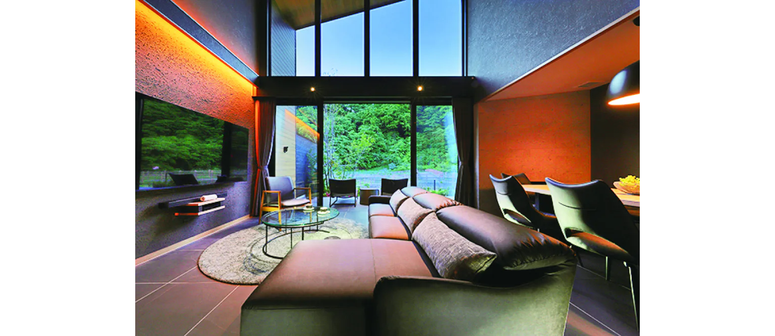那須塩原で初の1棟貸切のコンドミニアムヴィラ。全4棟のヴィラはフロント棟と完全独立型。専用車庫付きで愛車のまま乗り入れ可能。