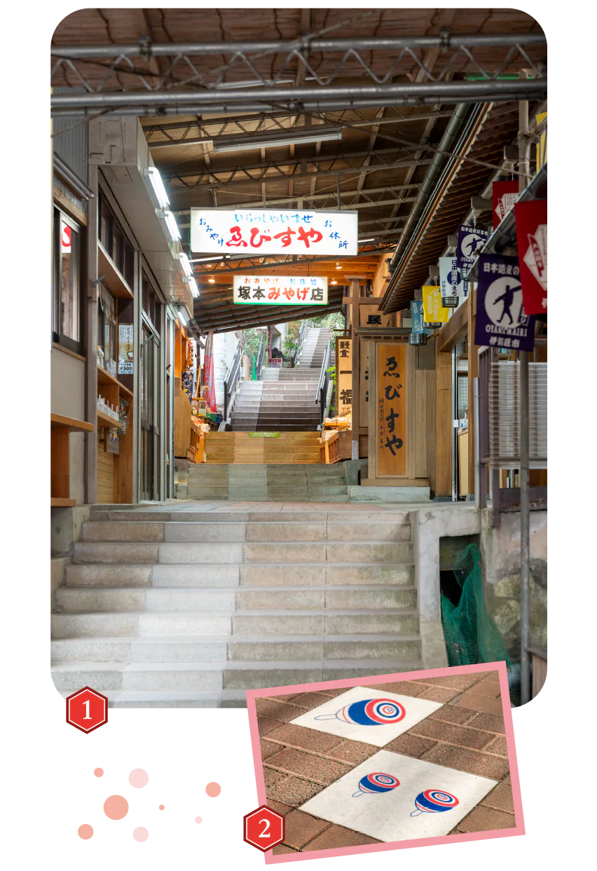 大山ケーブルバス停から大山ケーブル駅まで、階段状に続く参道で、「こま参道」の名は、江戸時代から伊勢原市に伝わる郷土玩具「大山こま」に由来する。362段の階段沿いには、大山名産のきゃらぶきや「大山こま」などを扱うみやげ物店がずらりと並ぶ。名物の大山とうふが味わえる食堂や宿坊もあり、参拝と合わせて訪れるのもおすすめ。不定休の店が多いので事前に営業時間を確認しよう。