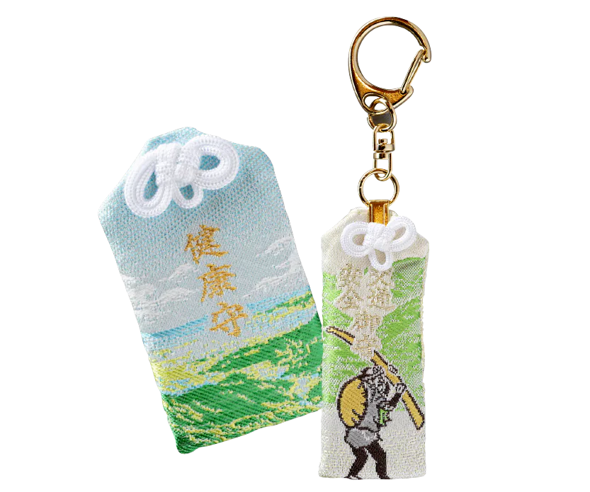健康守は大山からの美しい眺望が描かれている。交通安全守は江戸時代に流行した「納め太刀」を担ぐ旅人がモチーフ
