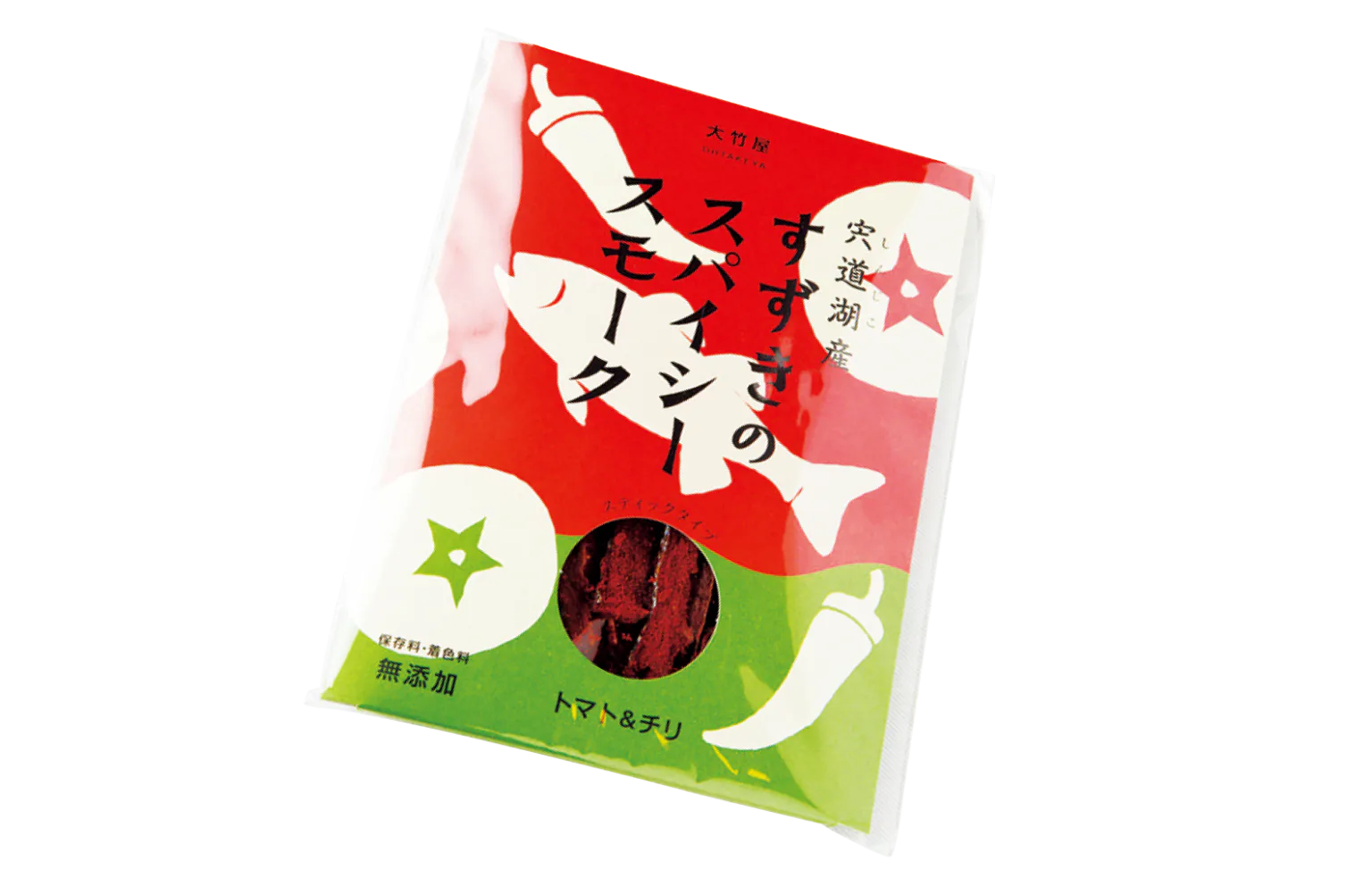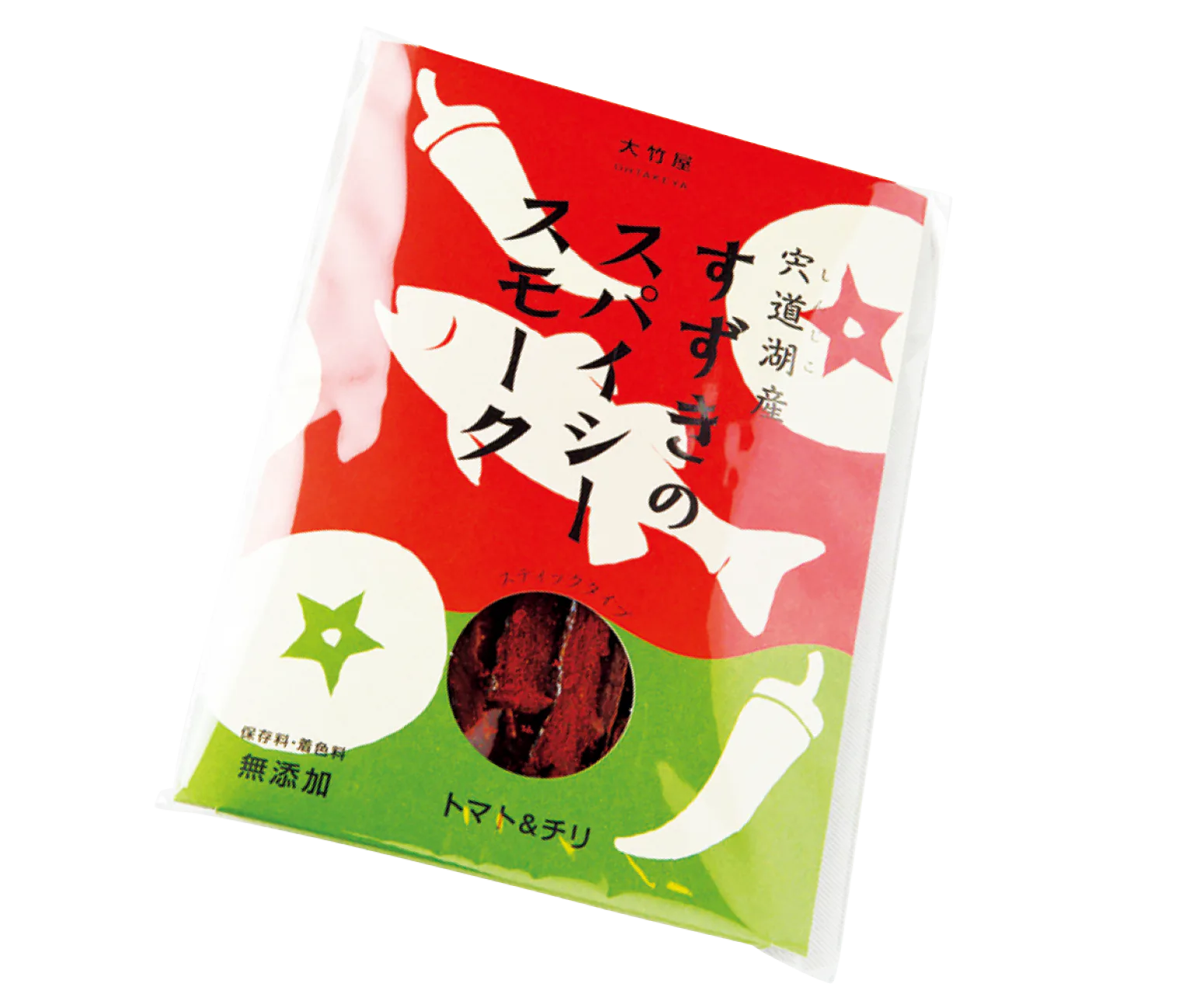 宍道湖七珍の一つである天然スズキの燻製。トマト&チリ味