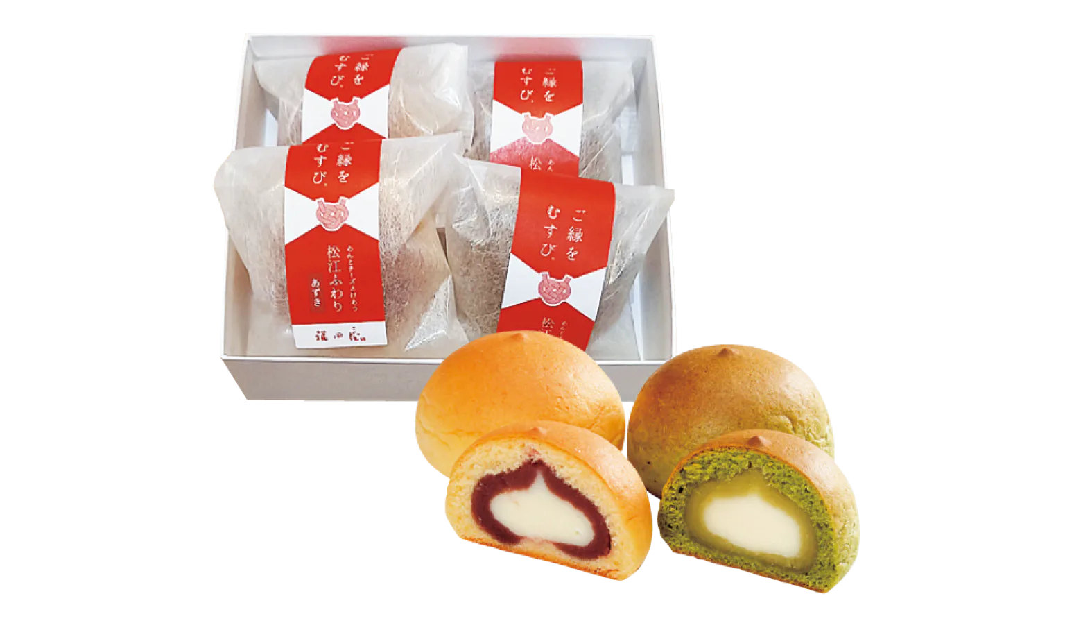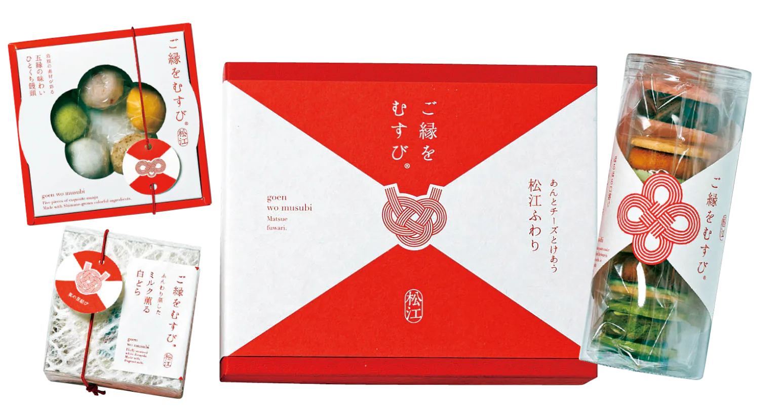 三英堂、風流堂、中浦食品、福田屋の4社が協力して開発した松江の新銘菓。島根ならではのパッケージで、お菓子の味も見た目も◎なので自分みやげや大切な人への贈り物として人気。シャミネ松江で販売されているものもある。