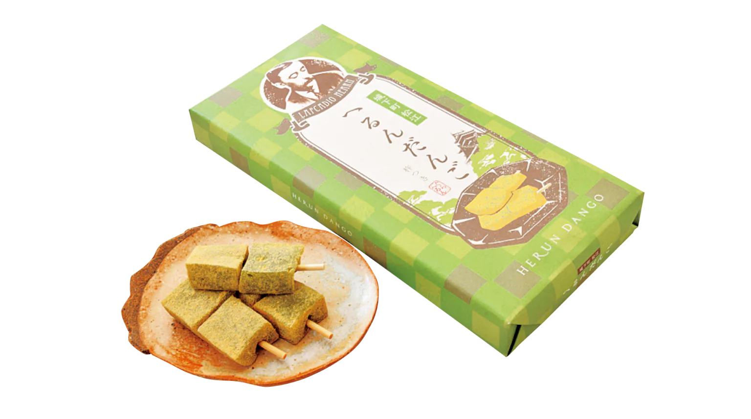 島根県産もち米を100%使用し、杵つきで仕上げ。地元の茶を練り込み、きな粉をまぶしている