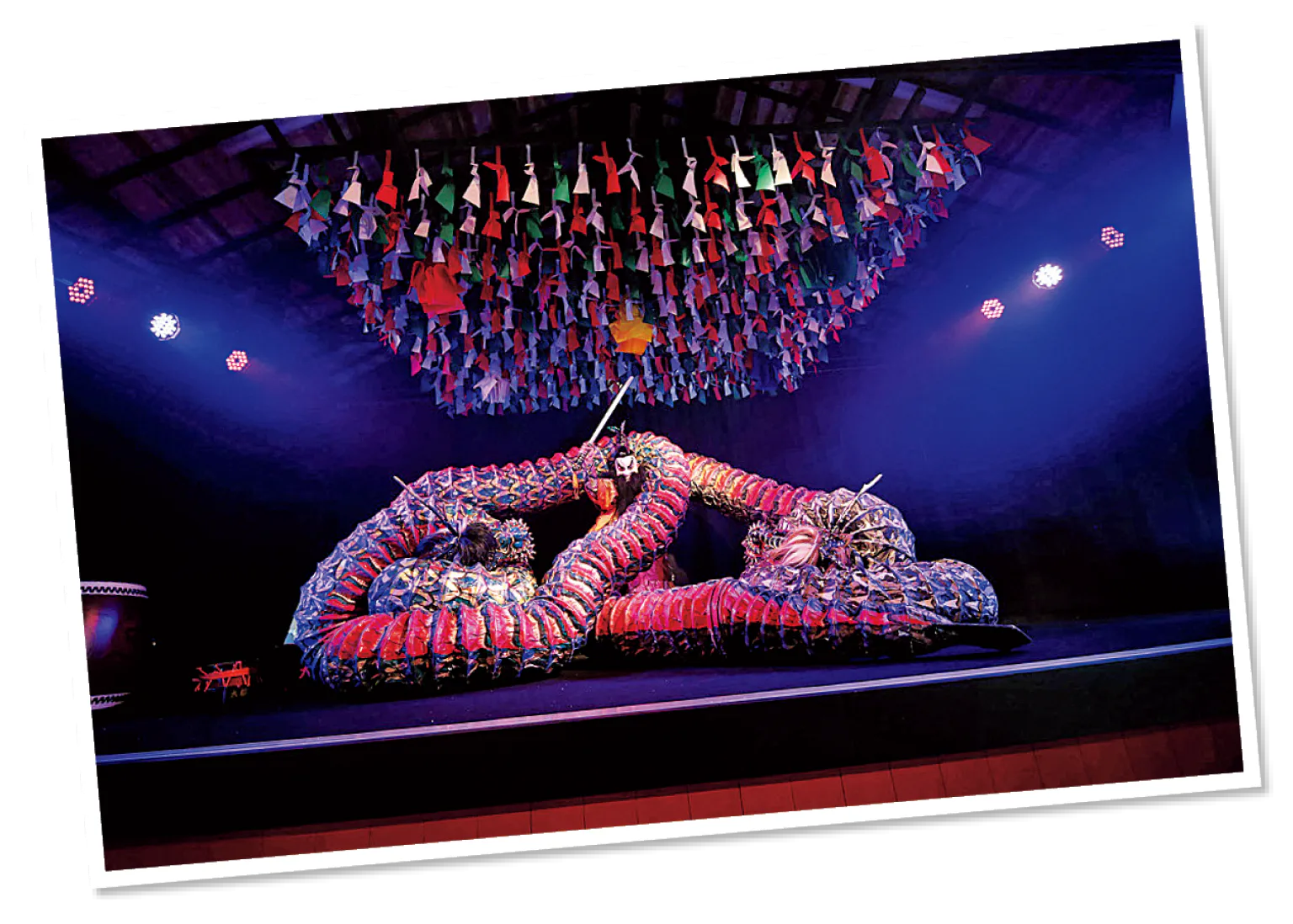 酒造りの神を祀る「佐香神社」。ここで神々が酒造りをし酒宴を開いたことから日本酒発祥の地とされる。良質な米と水、高い技術を受け継ぐ杜氏が揃い、現在も県内には多数の酒蔵がある。お好みの一本を見つけてみよう。日本酒は出雲神話の「ヤマタノオロチ伝説」にも登場。