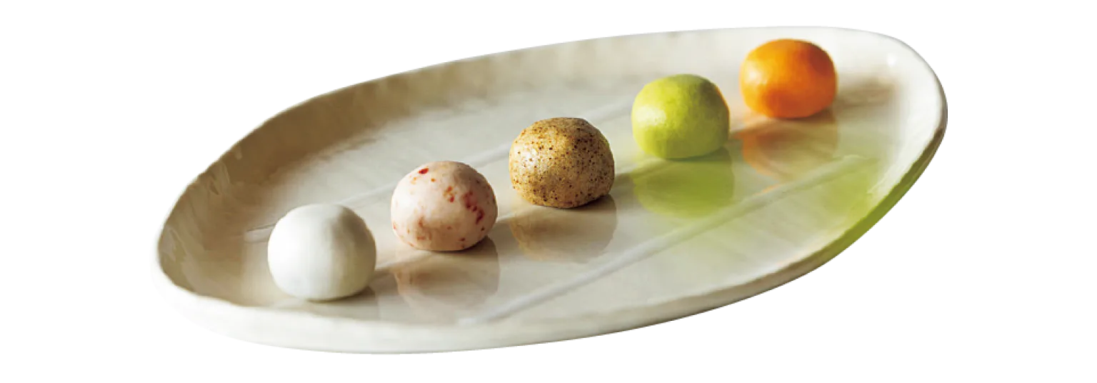 抹茶、珈琲、イチゴ、獅子柚子、元祖朝汐の5種類を楽しめる