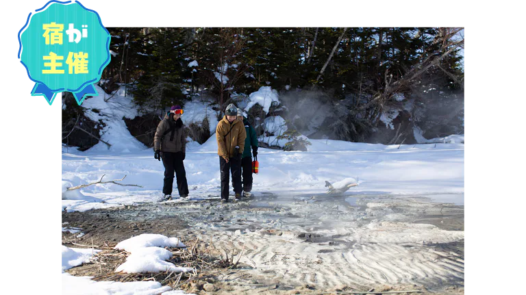 静かな雪原を歩くアクティビティは、感覚が研ぎ澄まされるような心地よさがある。写真は「あかん遊久の里 鶴雅」で楽しめる神秘の秘湖トレッキング
