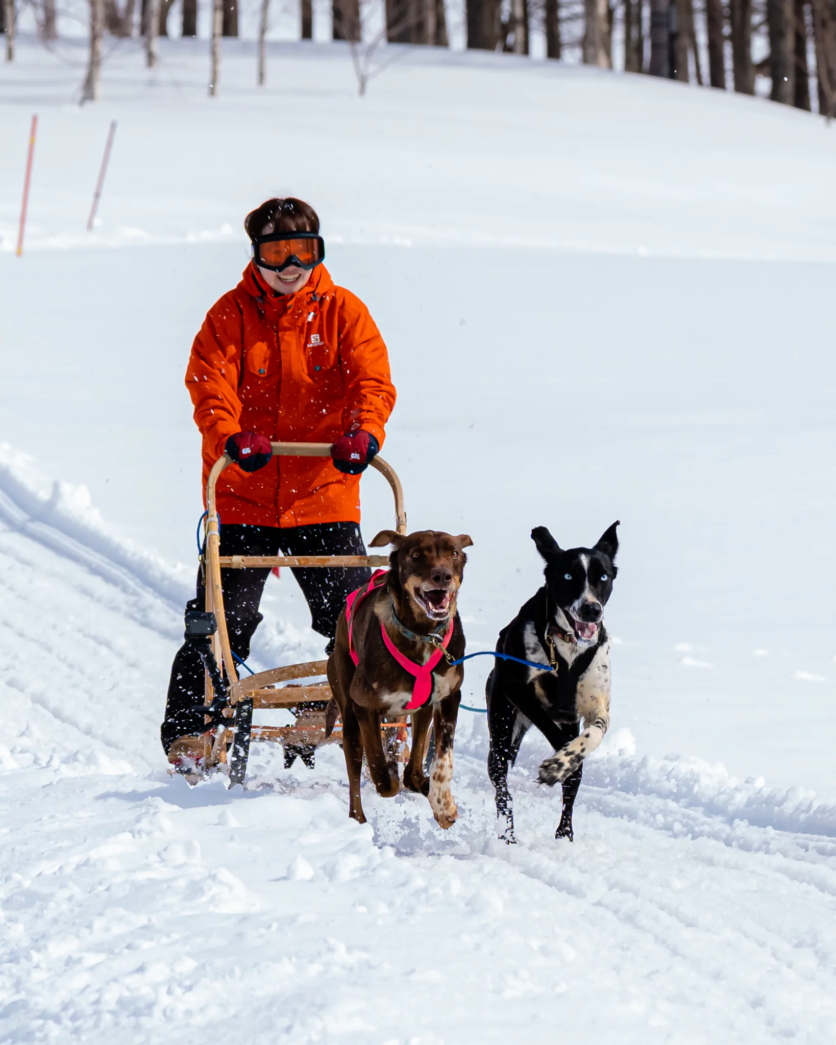 冬の北海道ならではのアクティビティのひとつ。写真は「ルスツリゾート」で楽しめる犬ぞり体験(バードウォッチングは新富良野プリンスホテルで開催)