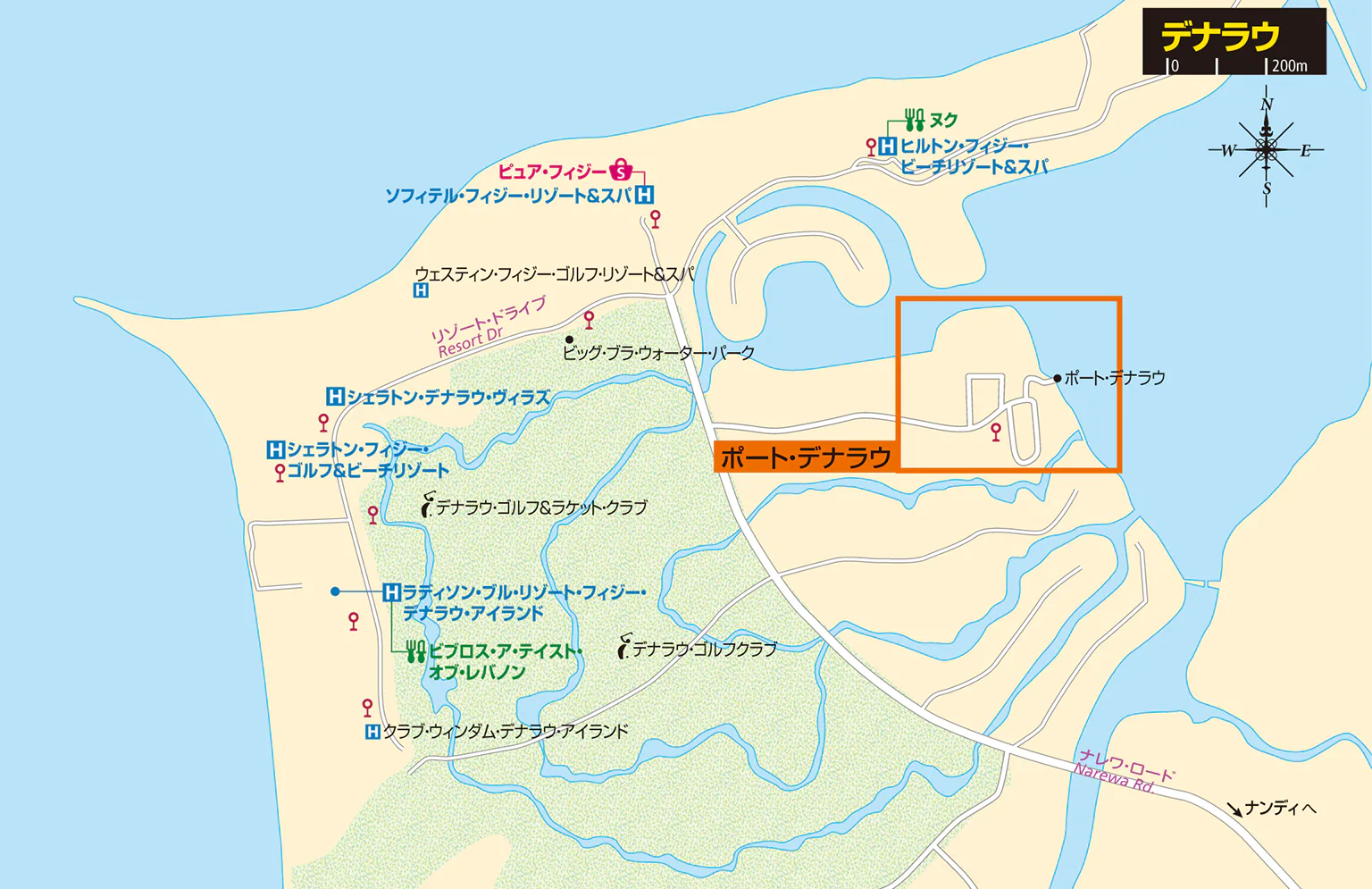 ナンディ国際空港から車で約20分の人工島。中心にはポート・デナラウがあり、ここからママヌザ諸島やヤサワ諸島行きの船が発着する。おしゃれなショップやレストランが並び、カフェでひと息ついたり、おみやげ探しを楽しんだりと、のんびり過ごすのにぴったり。周囲には大型の高級リゾートが点在し、洗練されたリゾートタウンの雰囲気が漂う。
