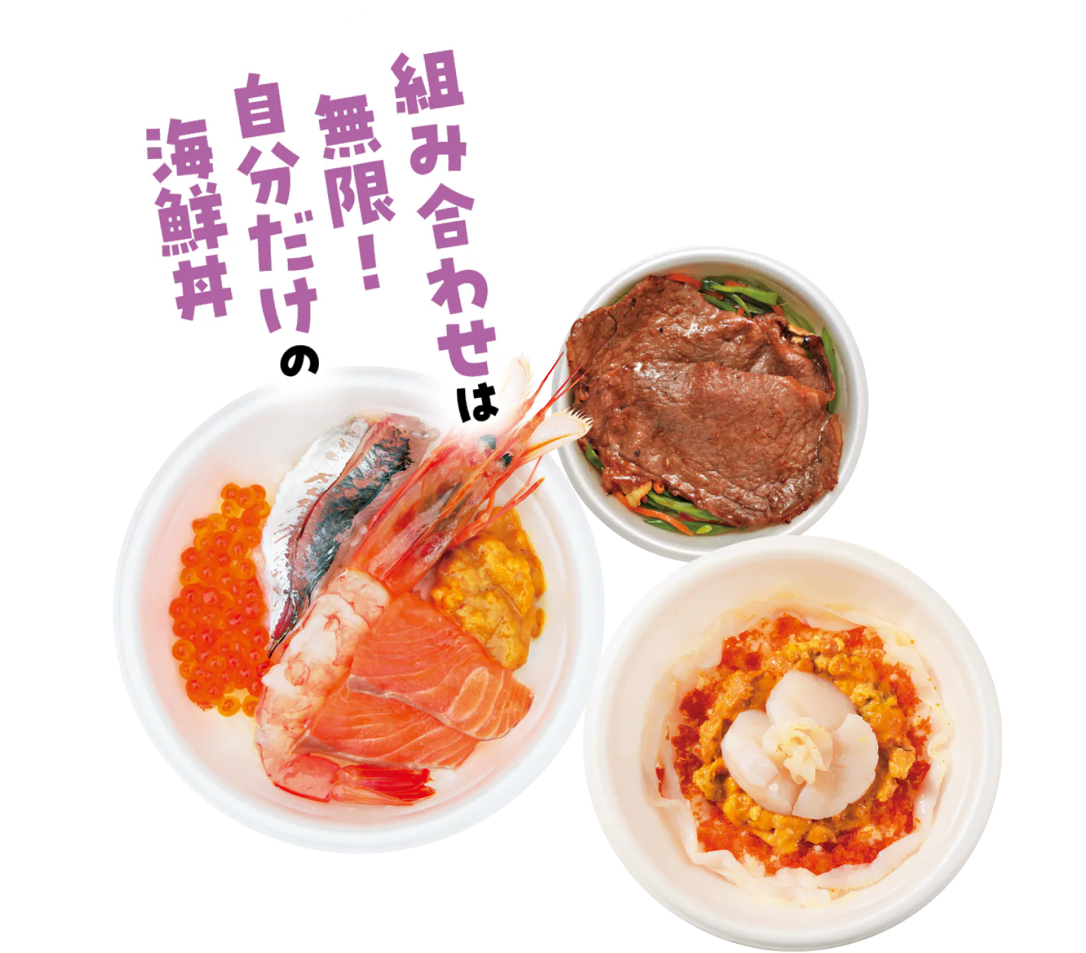 好きな具材を選べる青森名物オリジナル丼や、鮮度もうま味も抜群のマグロをメガ盛りで堪能できる丼など、ご当地限定グルメ!