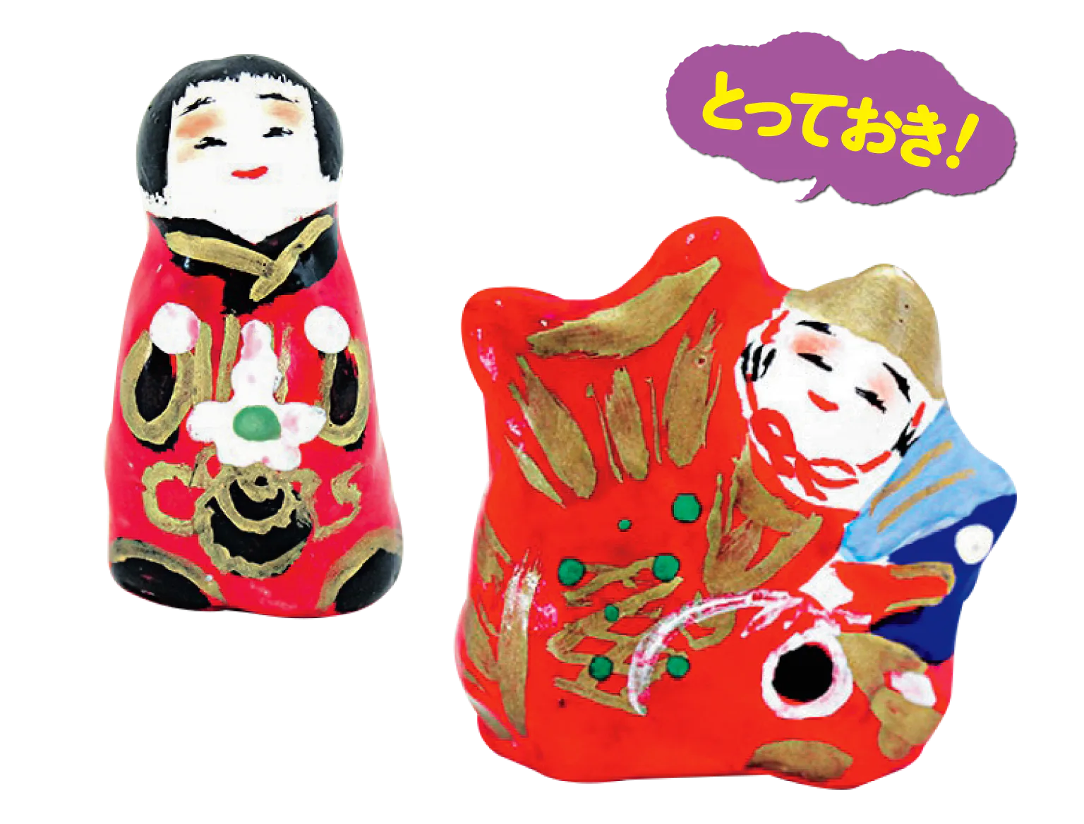 香川の郷土玩具。赤い人形を着た“奉公さん”は縁起物として古くから香川では親しまれているモチーフ