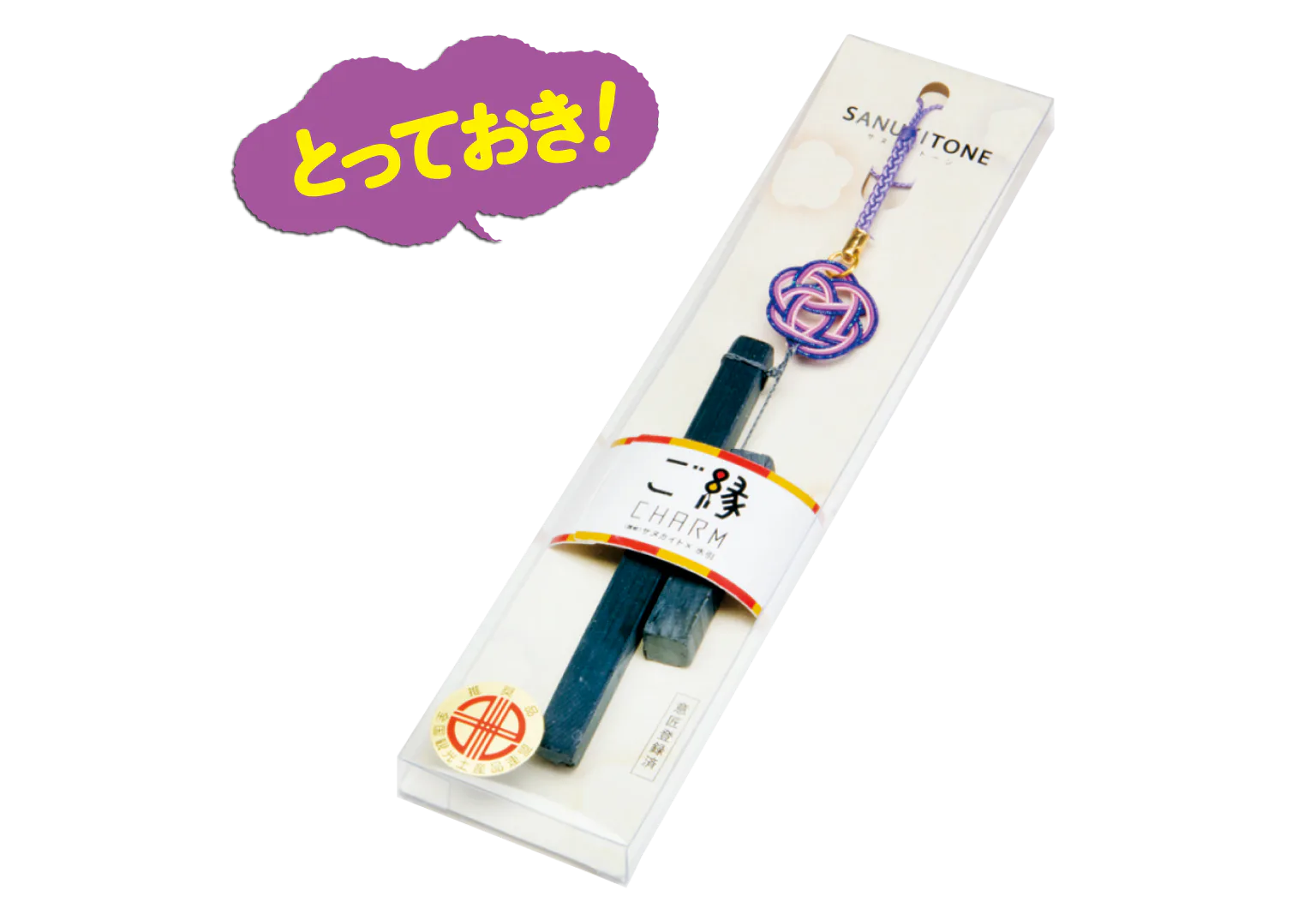 心地よい澄んだ響きを紡ぐ讃岐の石・サヌカイトをドアなどに。梅結びの水引がアクセント