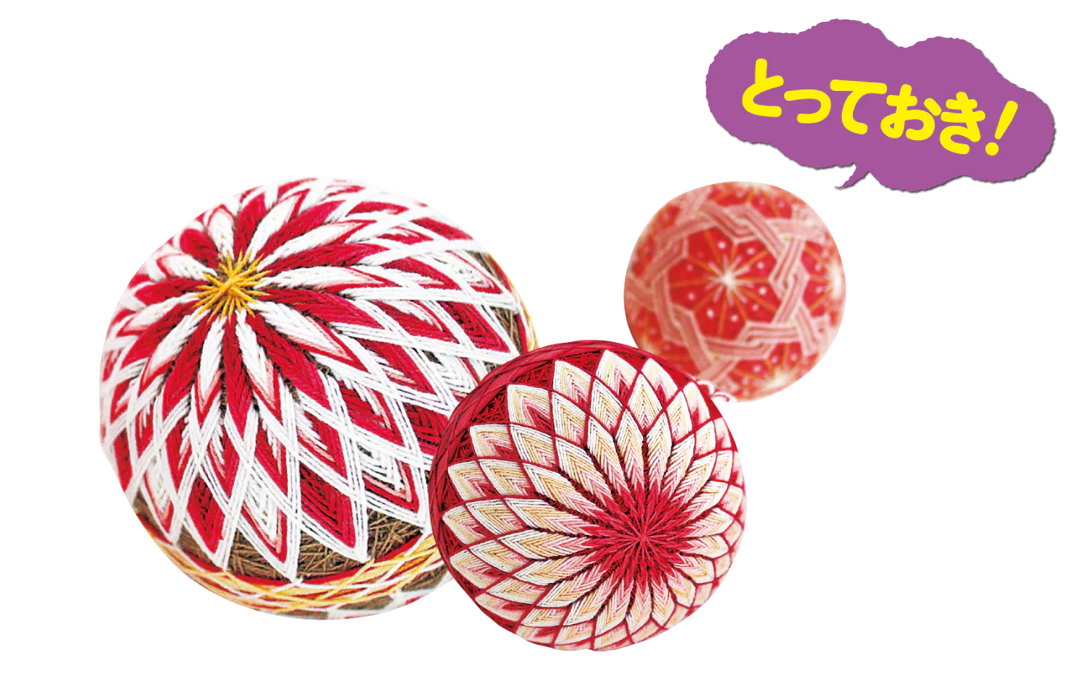 江戸時代から続く讃岐の手まりは、砂糖、塩と合わせて“讃岐三白”とよばれた木綿の糸を丁寧に草木染めして作られている。模様や色もとりどりで、部屋に飾りたくなる愛らしさ